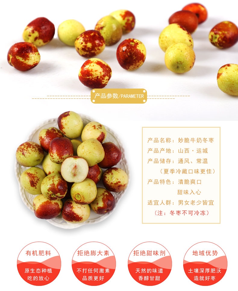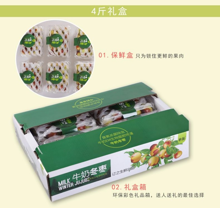 3、牛奶冬枣出口迪拜,法国,英国,加拿大等多个国家,好评如潮,国内线上销售每箱附赠出口检测证书。