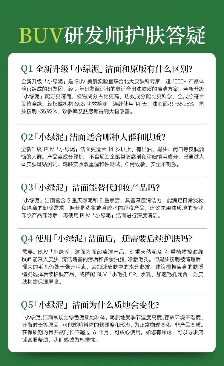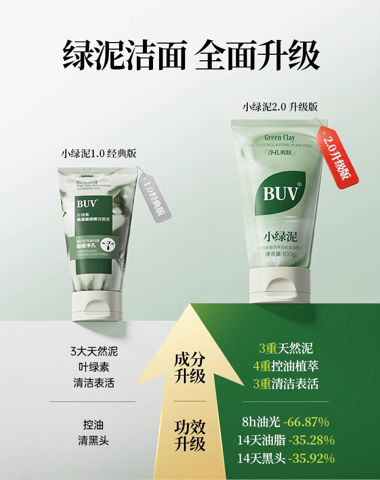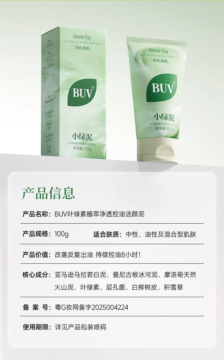 [小滋心选]【活动价¥49.9】【黄子韬代言】BUV叶绿素细嫩洁面清洁黑头收缩毛孔控油绿泥洗面奶