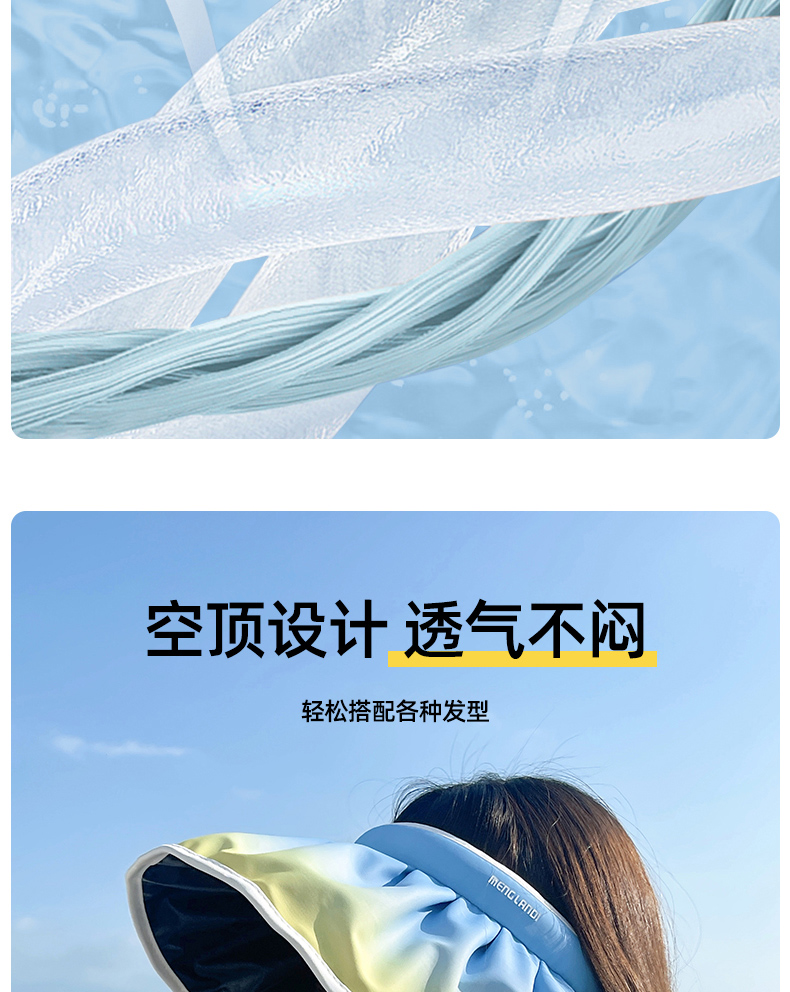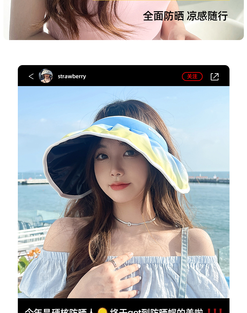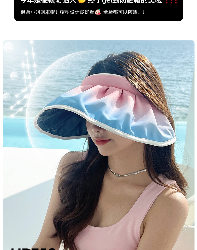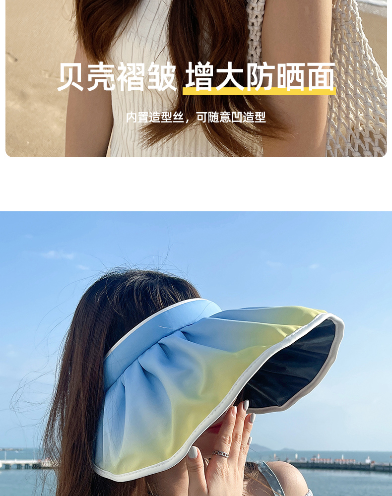 【sunnyuvcut】加宽加大黑胶渐变防晒贝壳帽 AJMZ4423