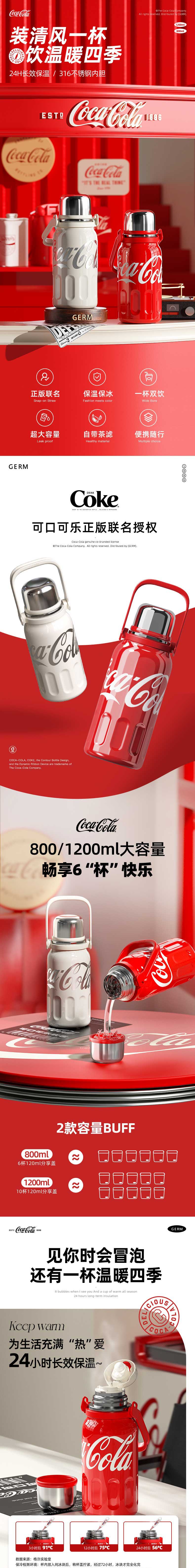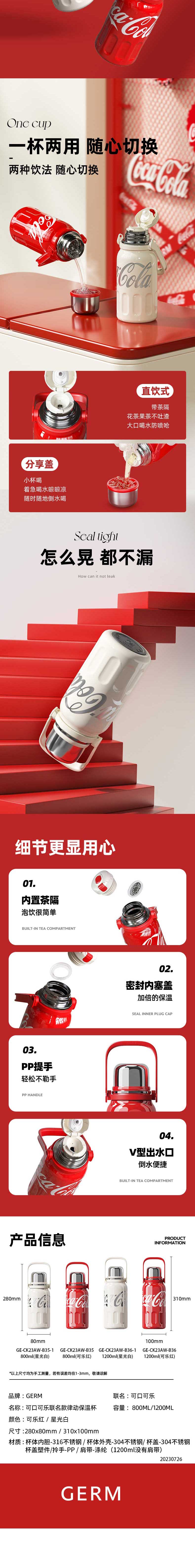 GE-CK23AW-B36系列 可口可乐联名款律动保温杯1200ml
