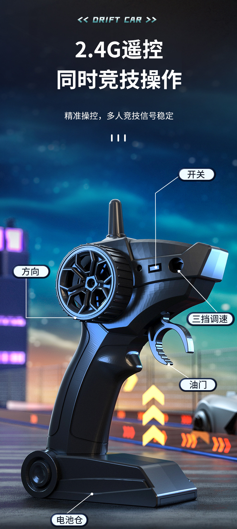 【RC遥控车电动漂移四驱车】充电高速赛车2.4G灯光 儿童小汽车玩具竞速狂者