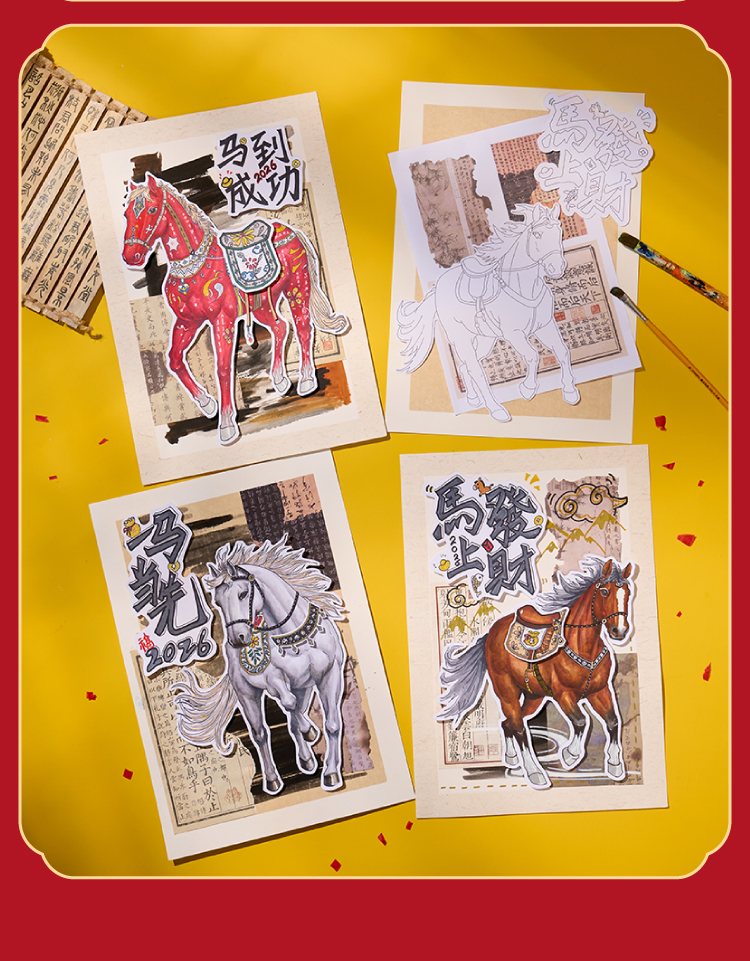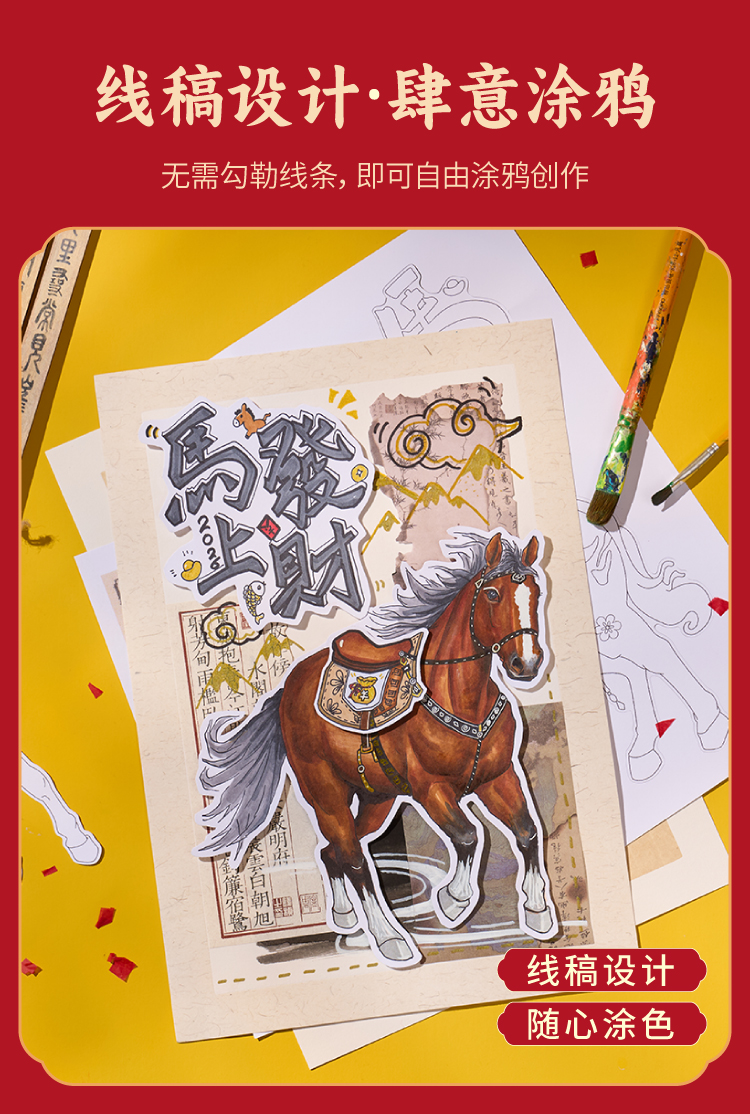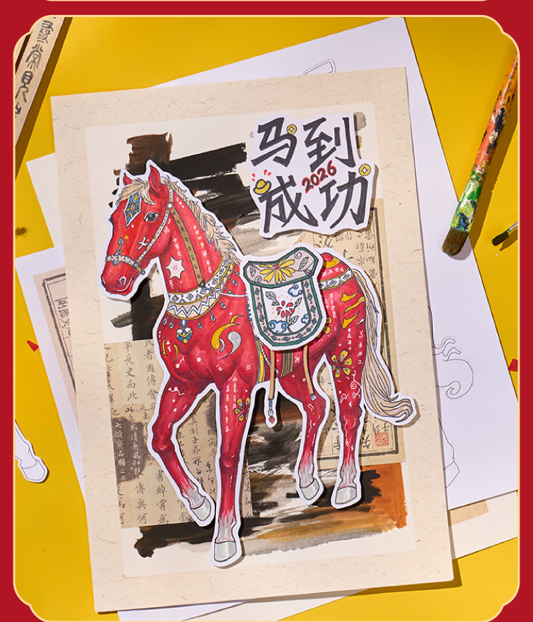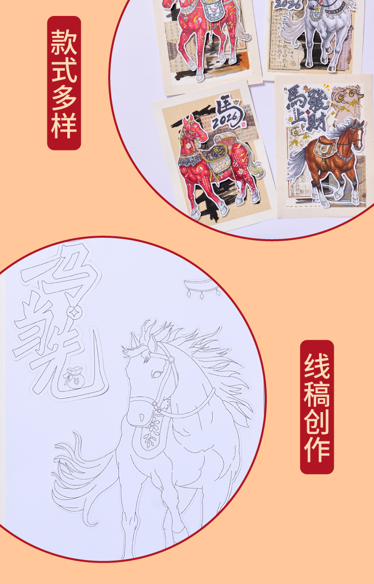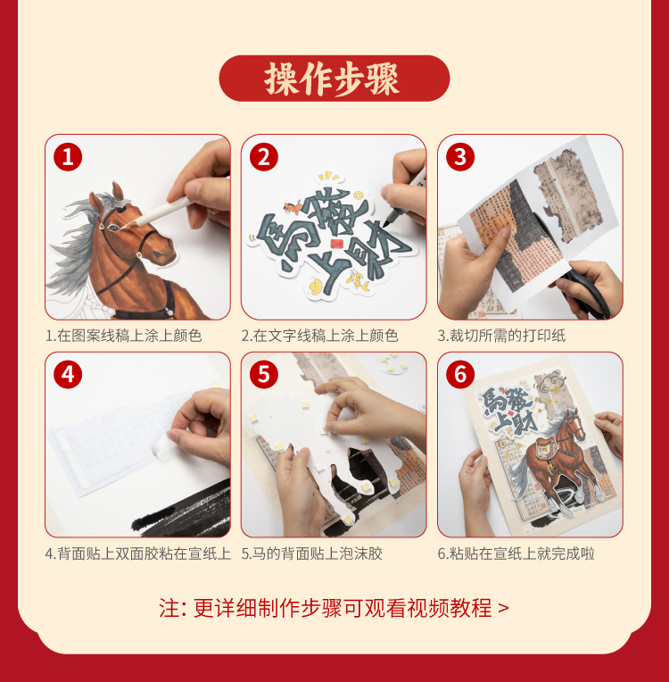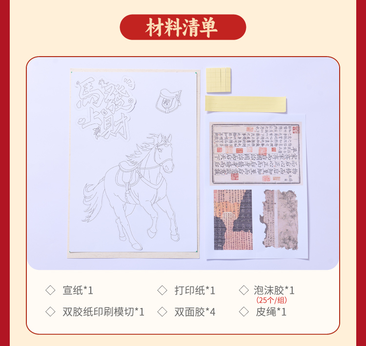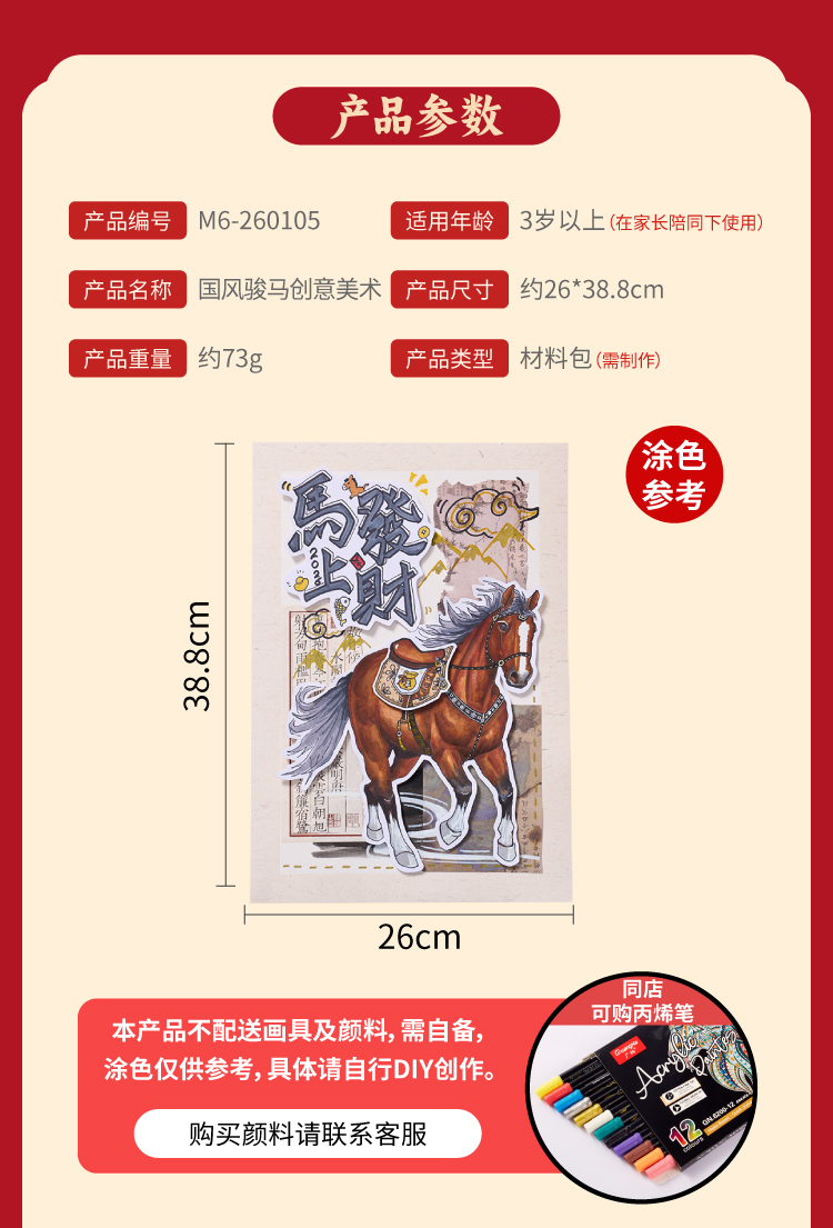 新年春节元旦马年国风骏马创意美术手工diy儿童材料包幼儿园非遗