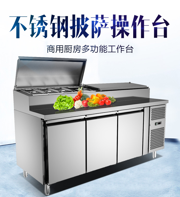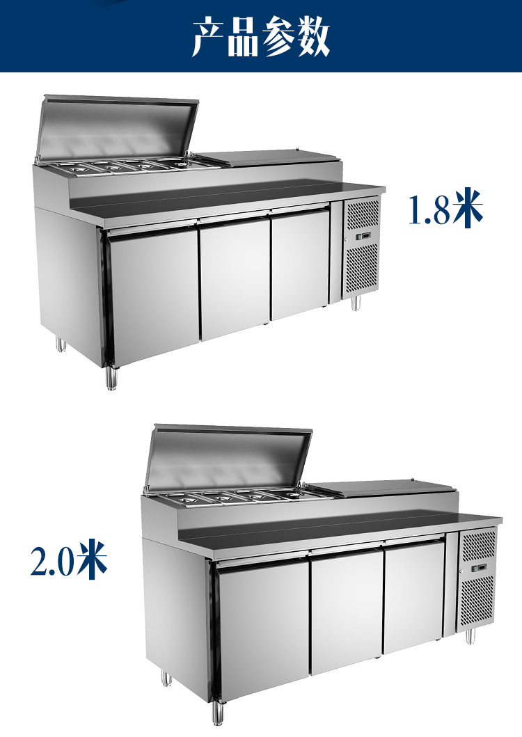 LU-GD18欧罗巴风冷披萨304钢工作台操作台藏柜1.8 2米进口比萨柜沙拉台LU-GD18