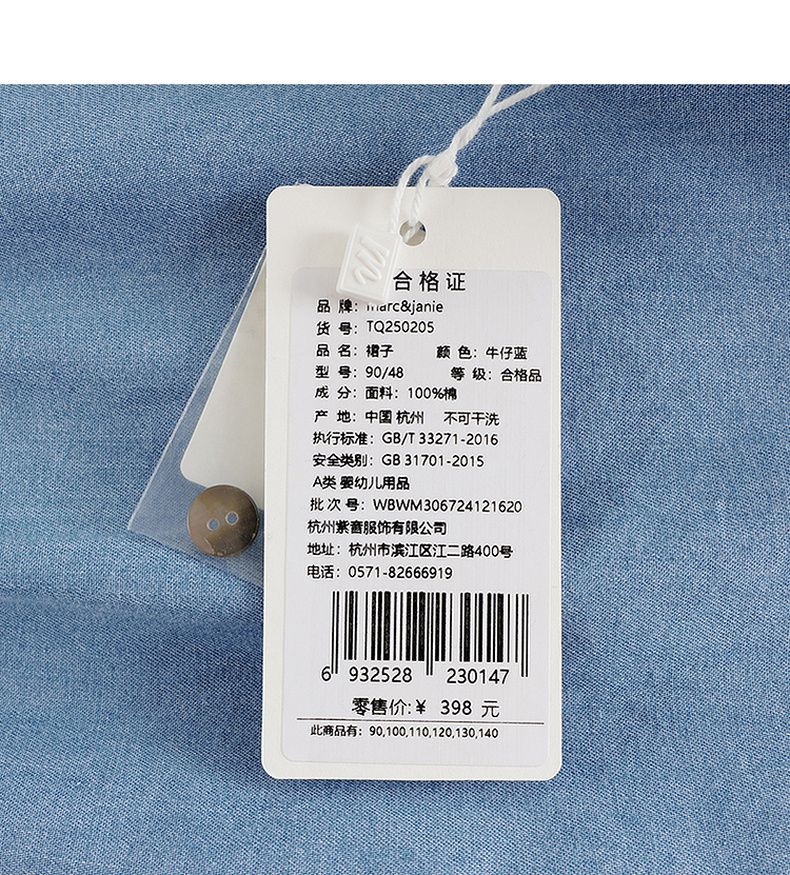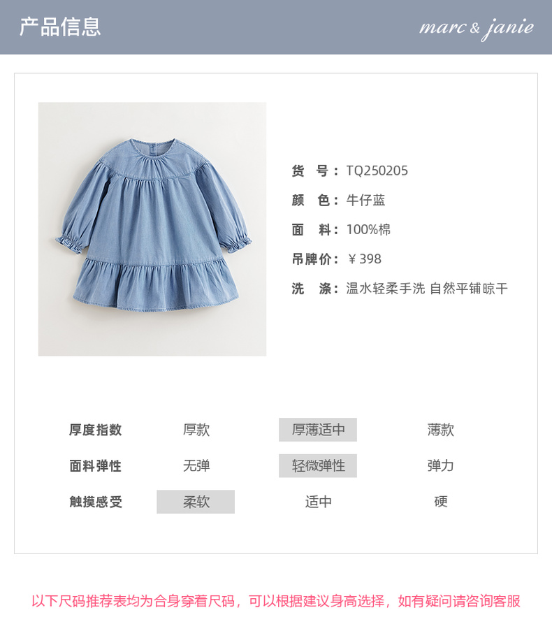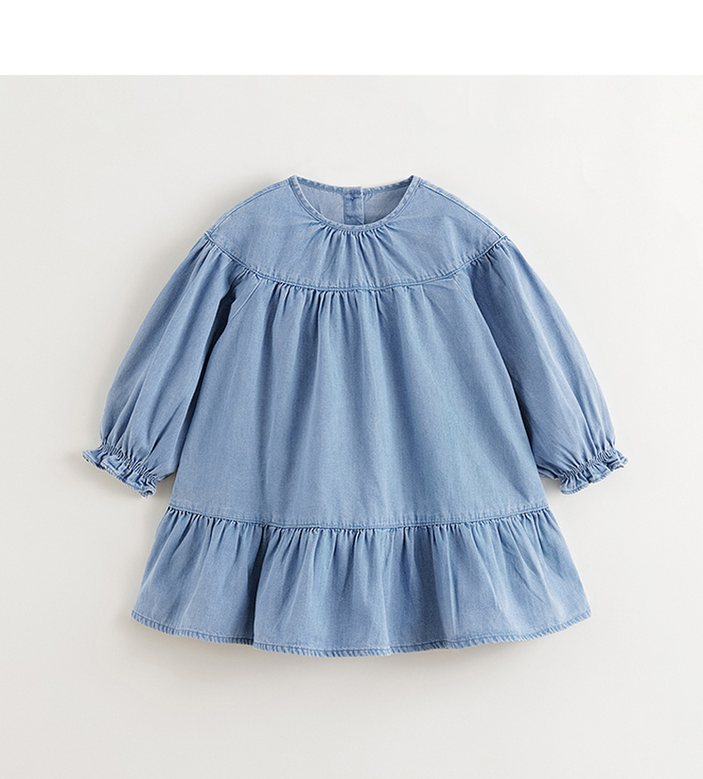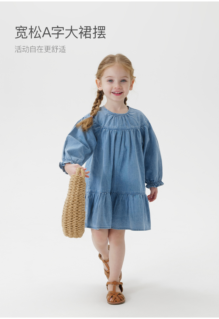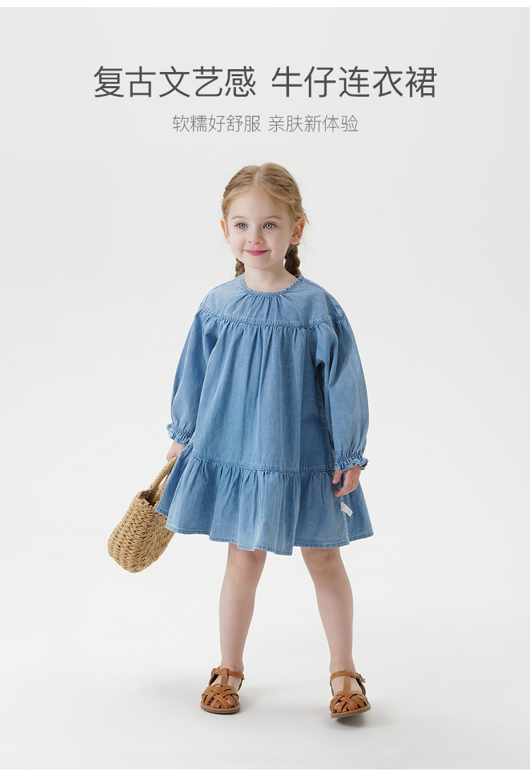 马克珍妮女童复古文艺牛仔连衣裙 儿童裙子2025年春装新款250205
