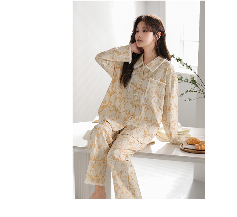 可人儿新款纯棉睡衣女士春秋季长袖时尚开衫开衫可外出家居服套装