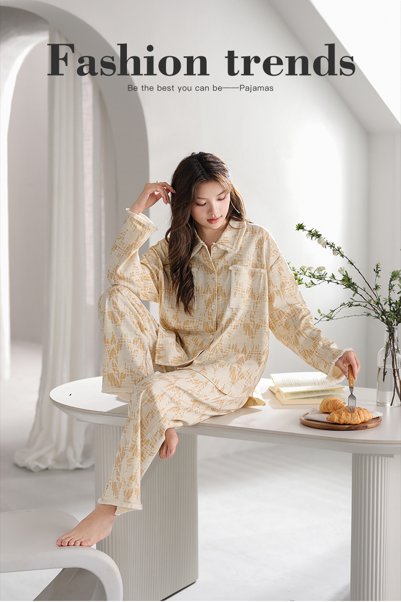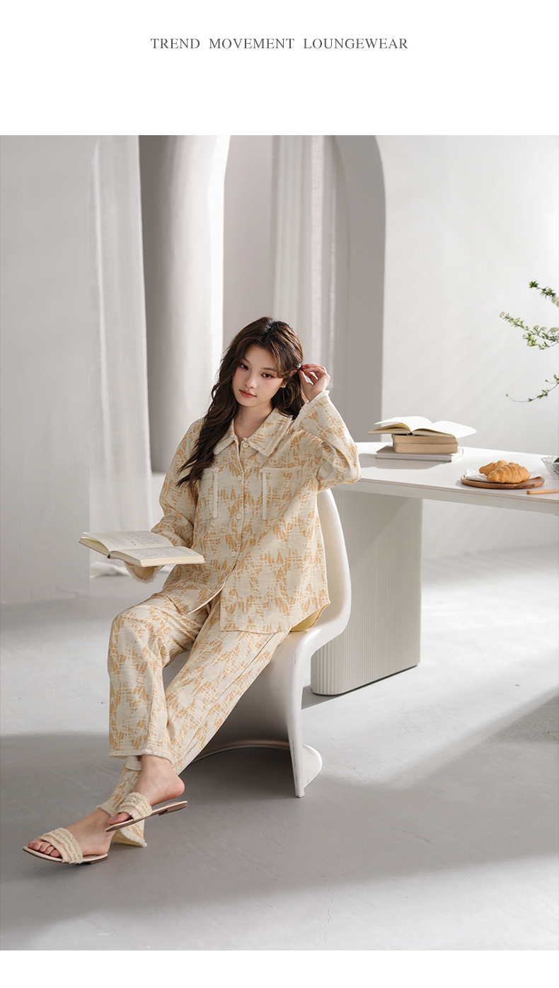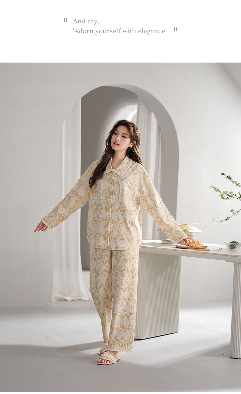 可人儿小众设计师新款奥力绵女士睡衣春秋长袖可外出家居服套装