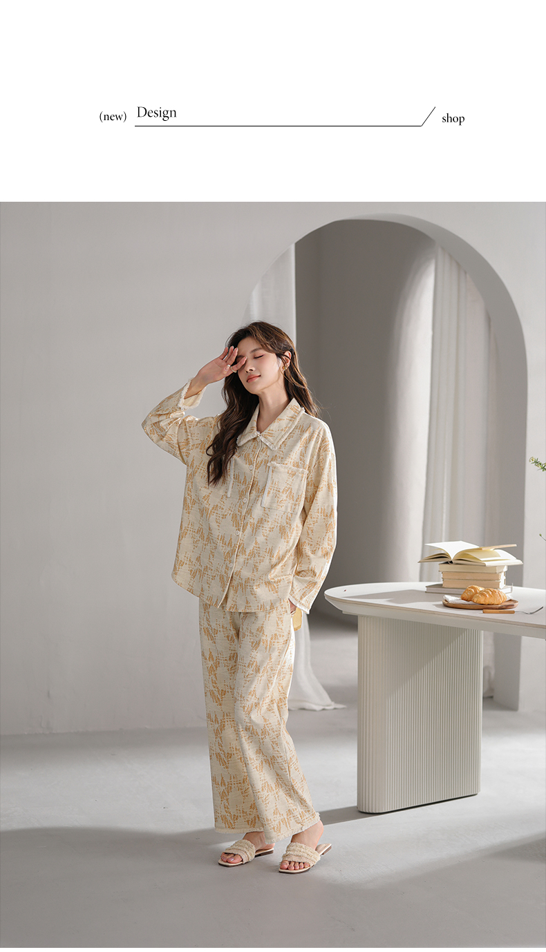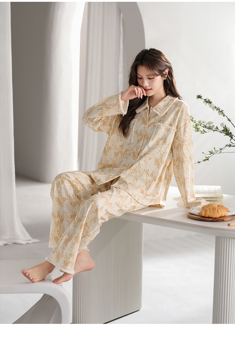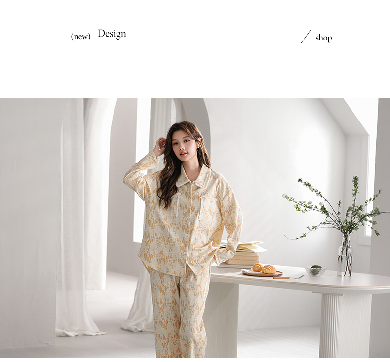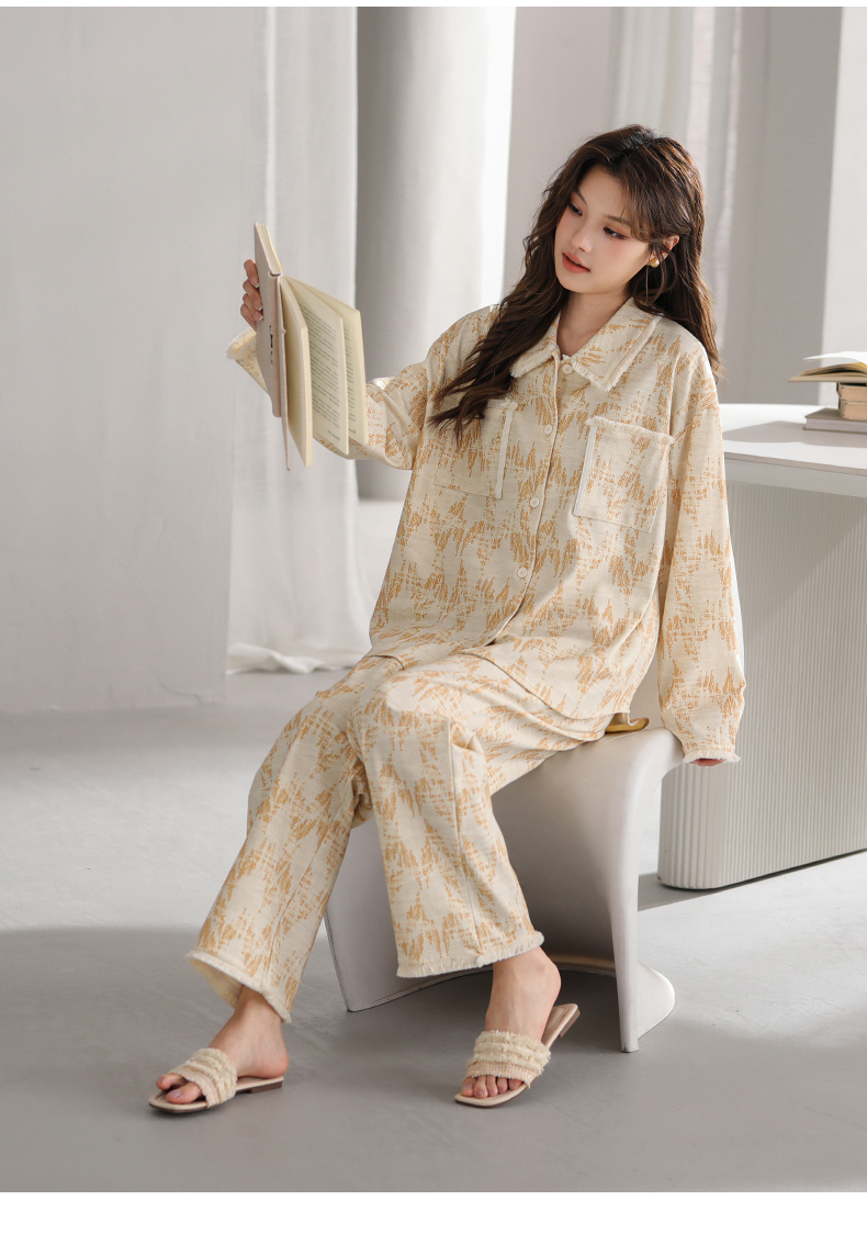可人儿小众设计师新款奥力绵女士睡衣春秋长袖可外出家居服套装