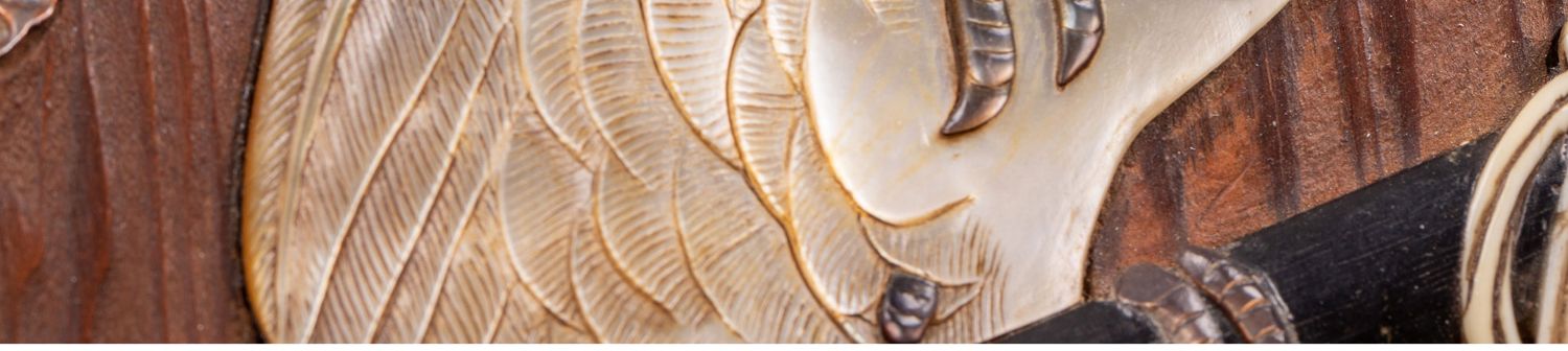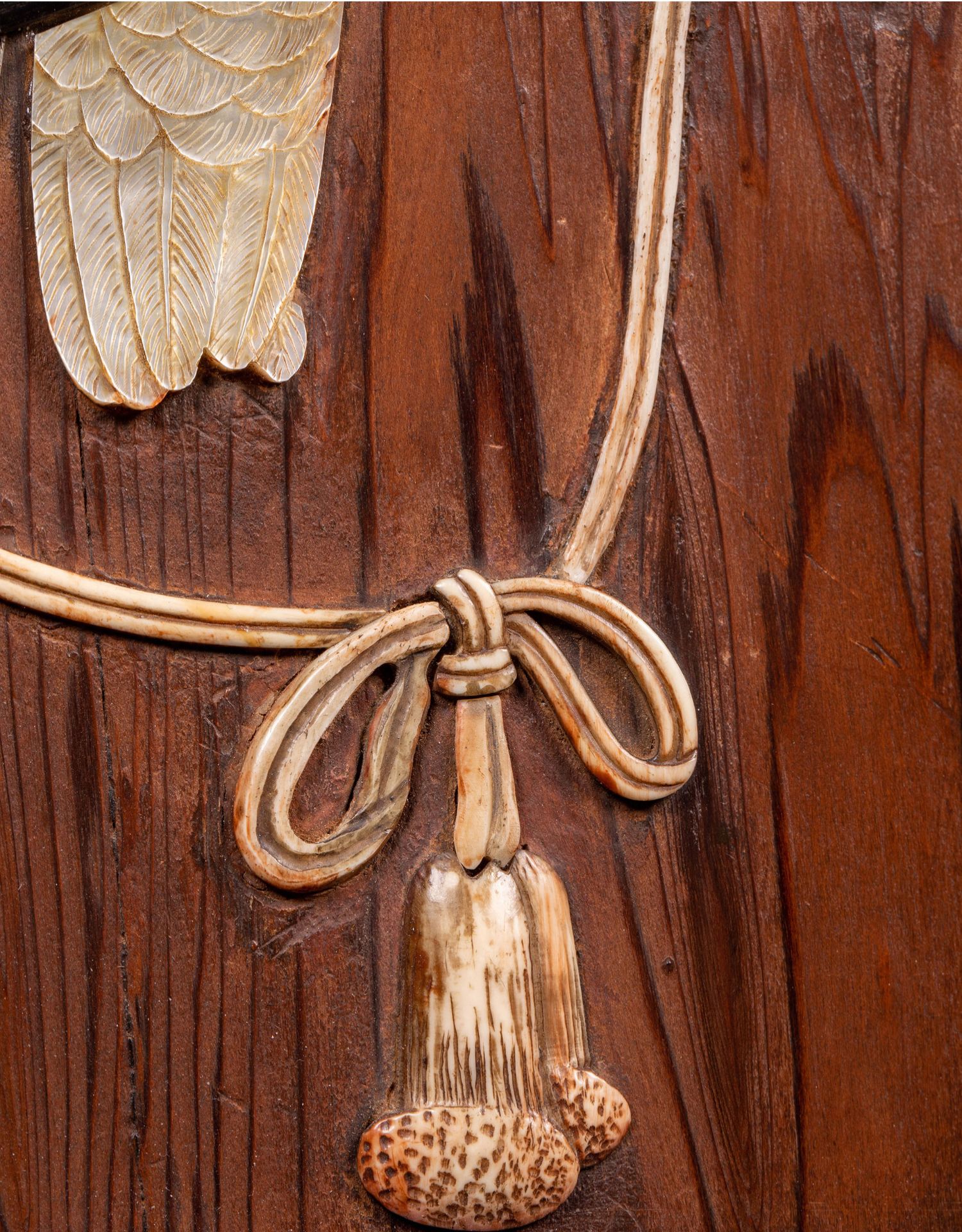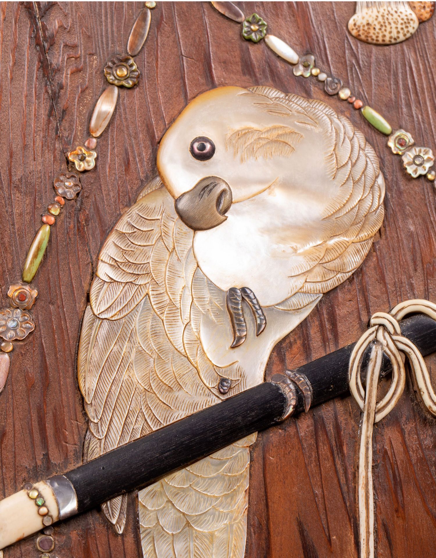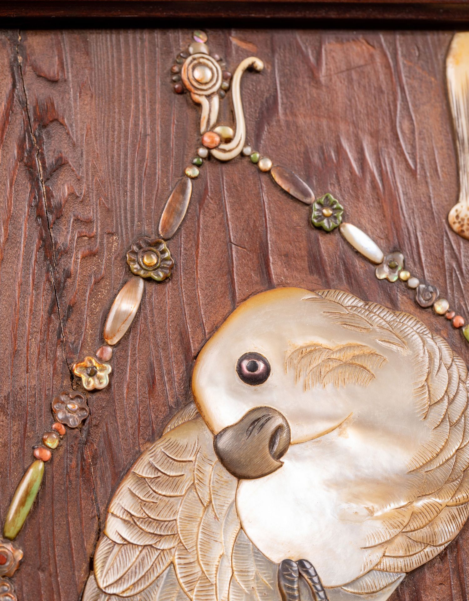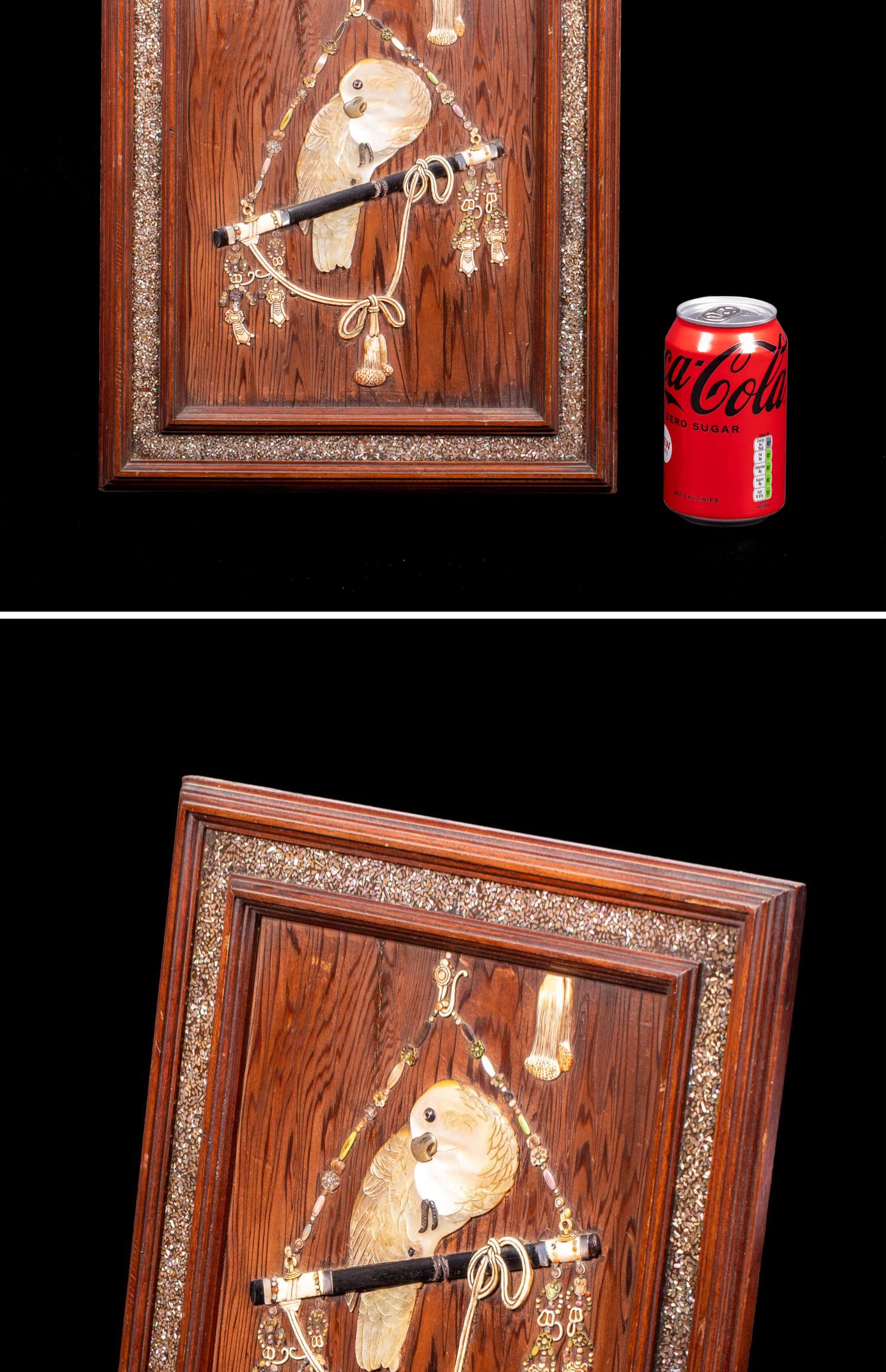 独角鹿西洋古董家居饰品1880年代日本明治时期鹦鹉主题芝山镶嵌画