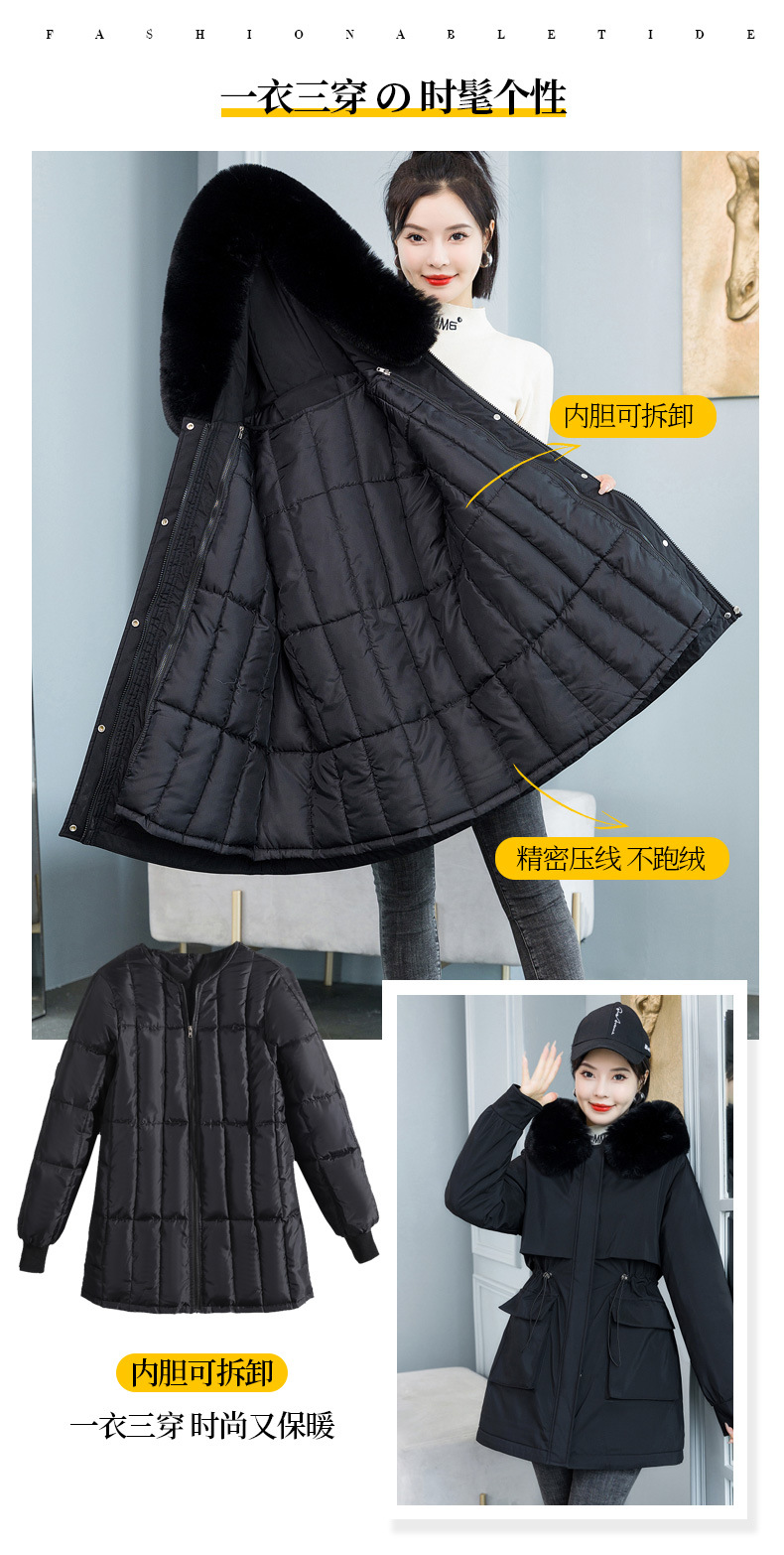 【可拆卸一衣三穿派克服】 风衣外套棉衣派克服女中长款棉服收腰棉袄活里活面