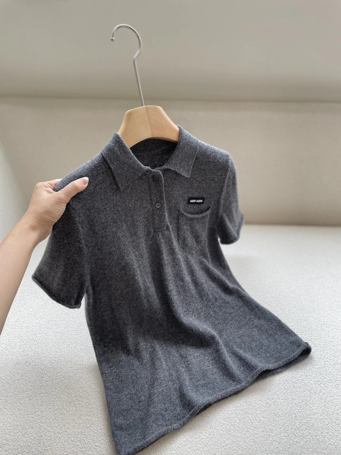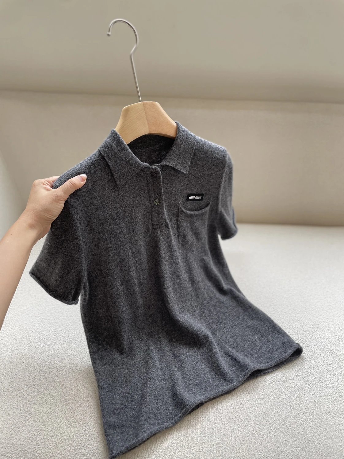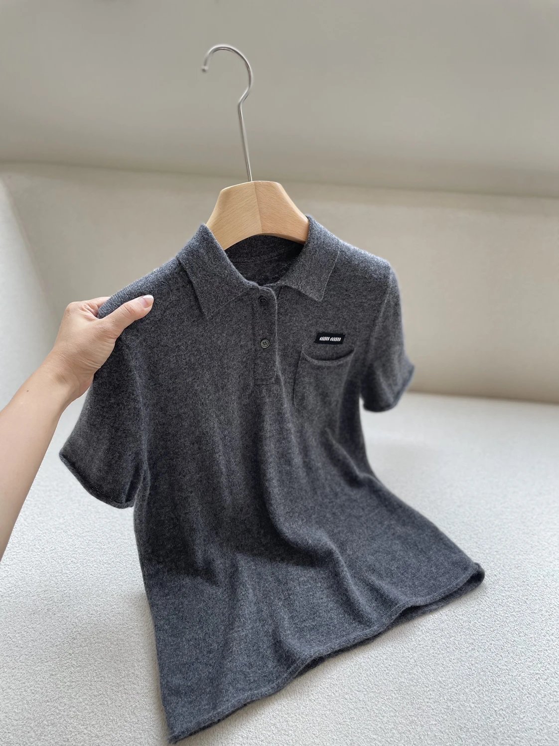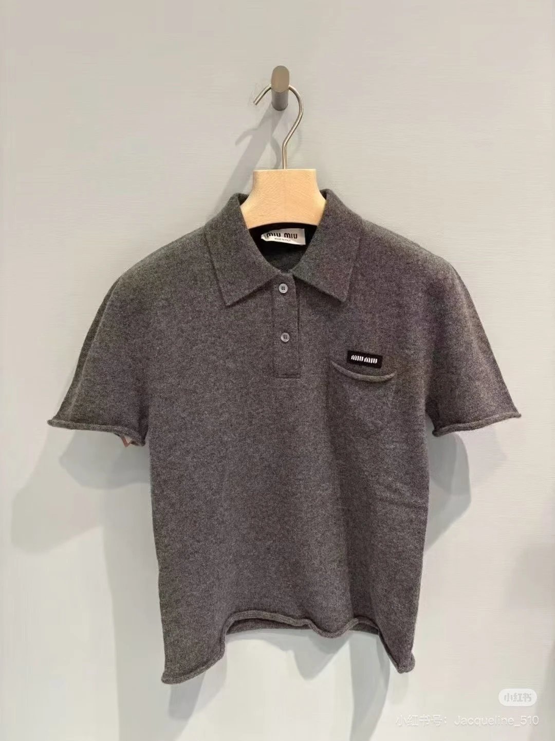重磅渠道 miu卷边羊绒短袖 知识分子MIU系polo针织 100羊绒针织 可盐可甜