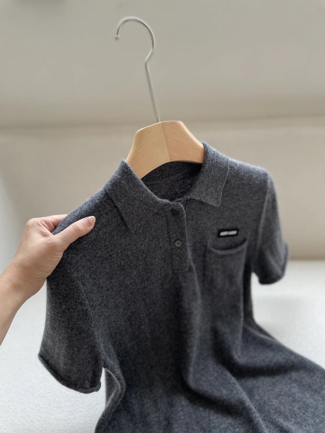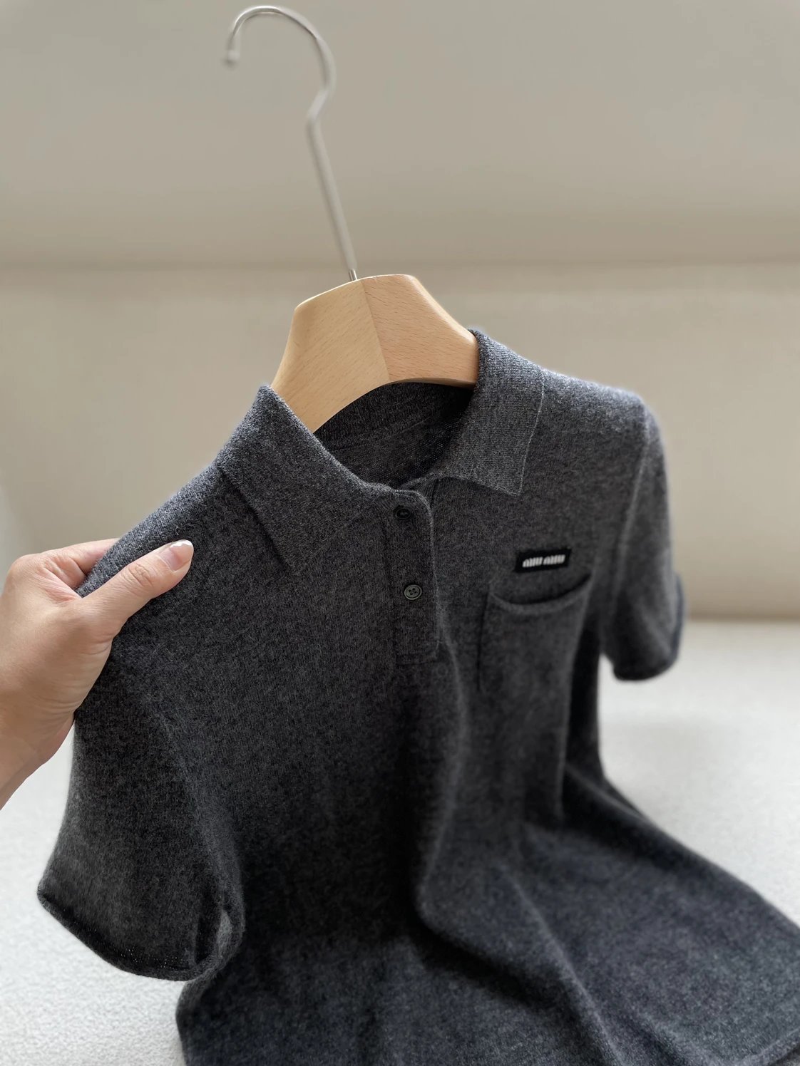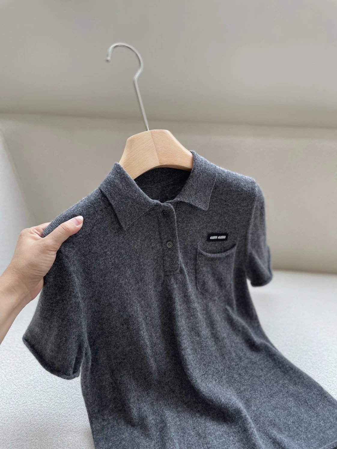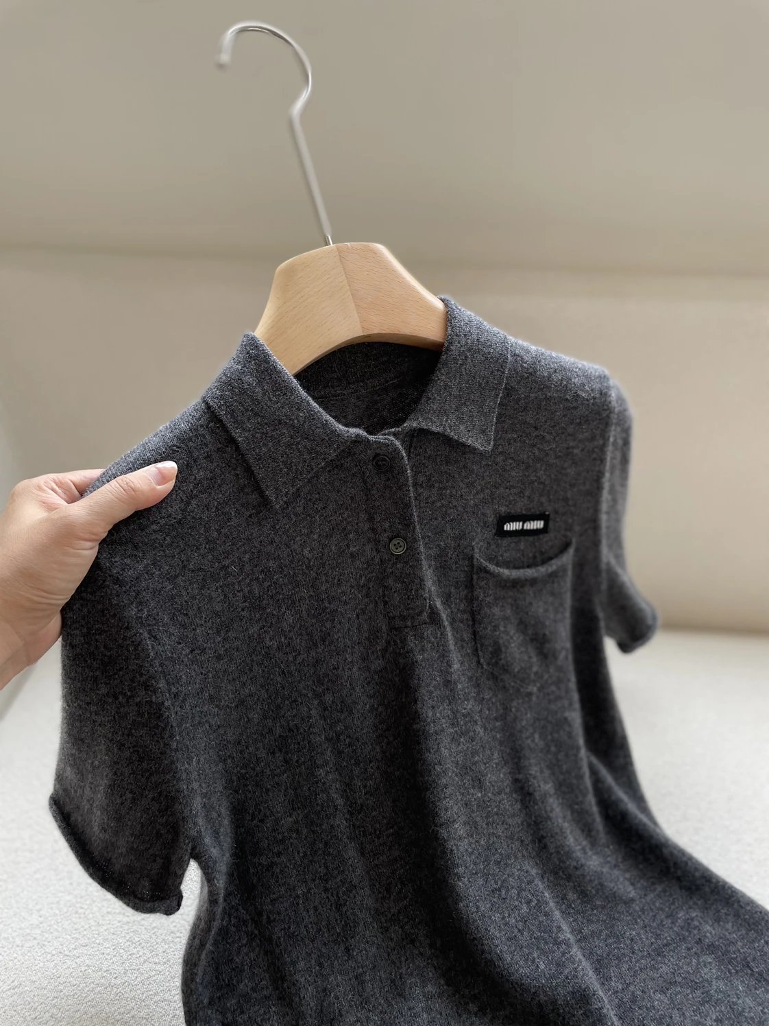 重磅渠道 miu卷边羊绒短袖 知识分子MIU系polo针织 100羊绒针织 可盐可甜