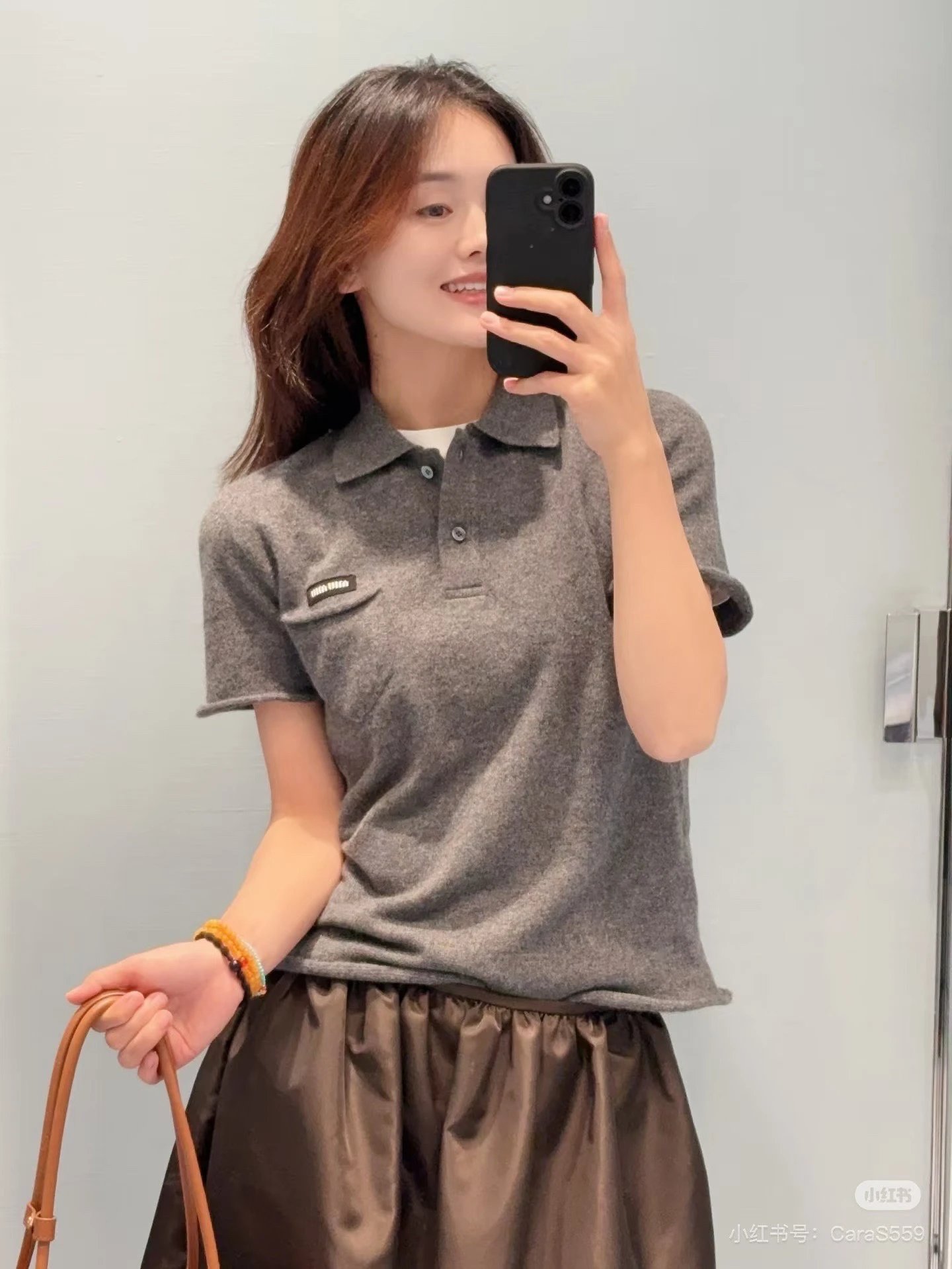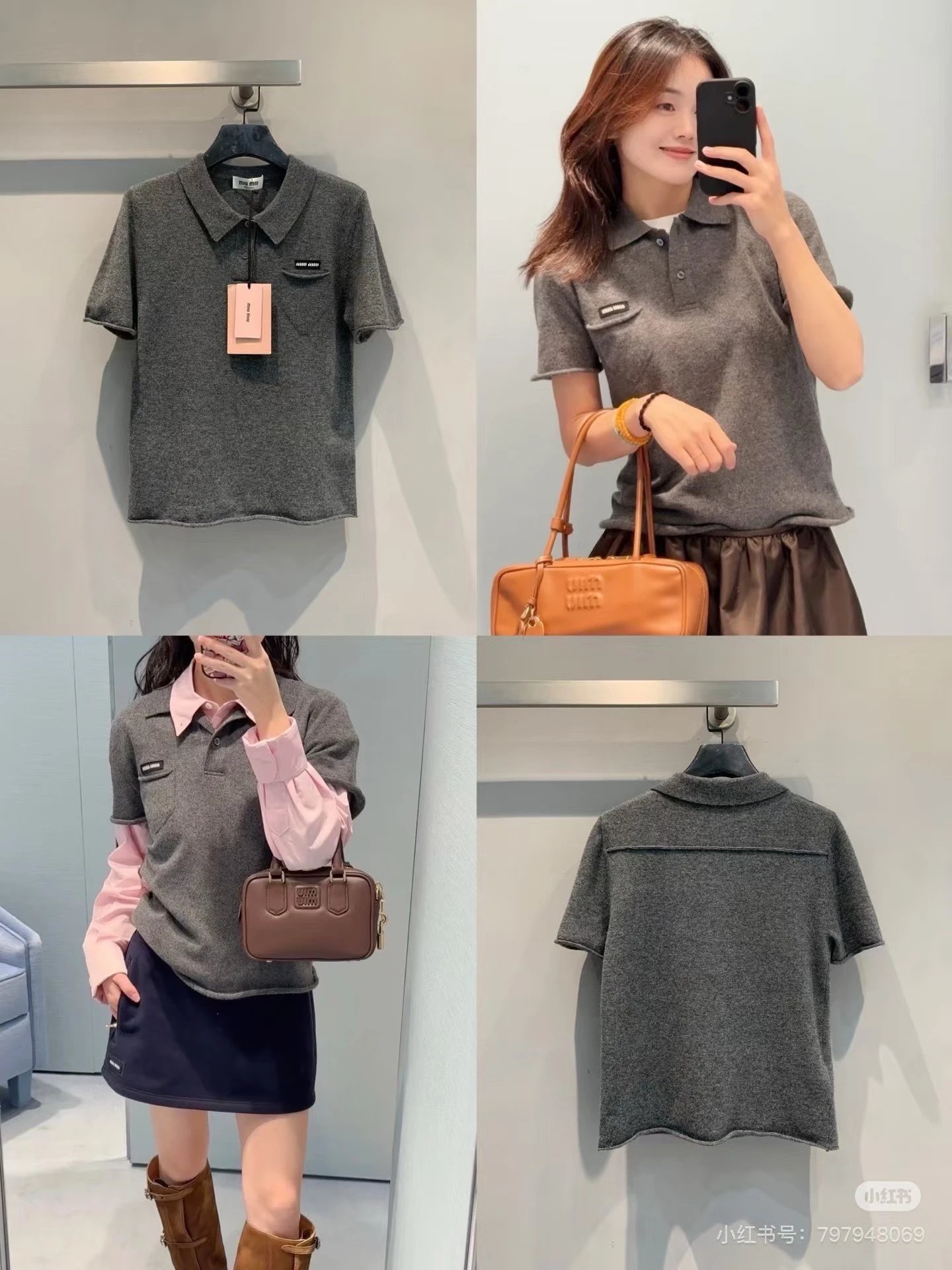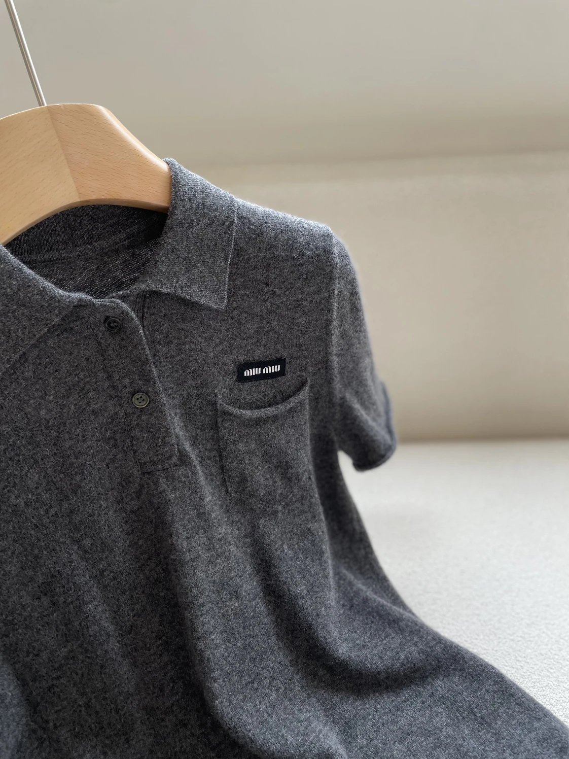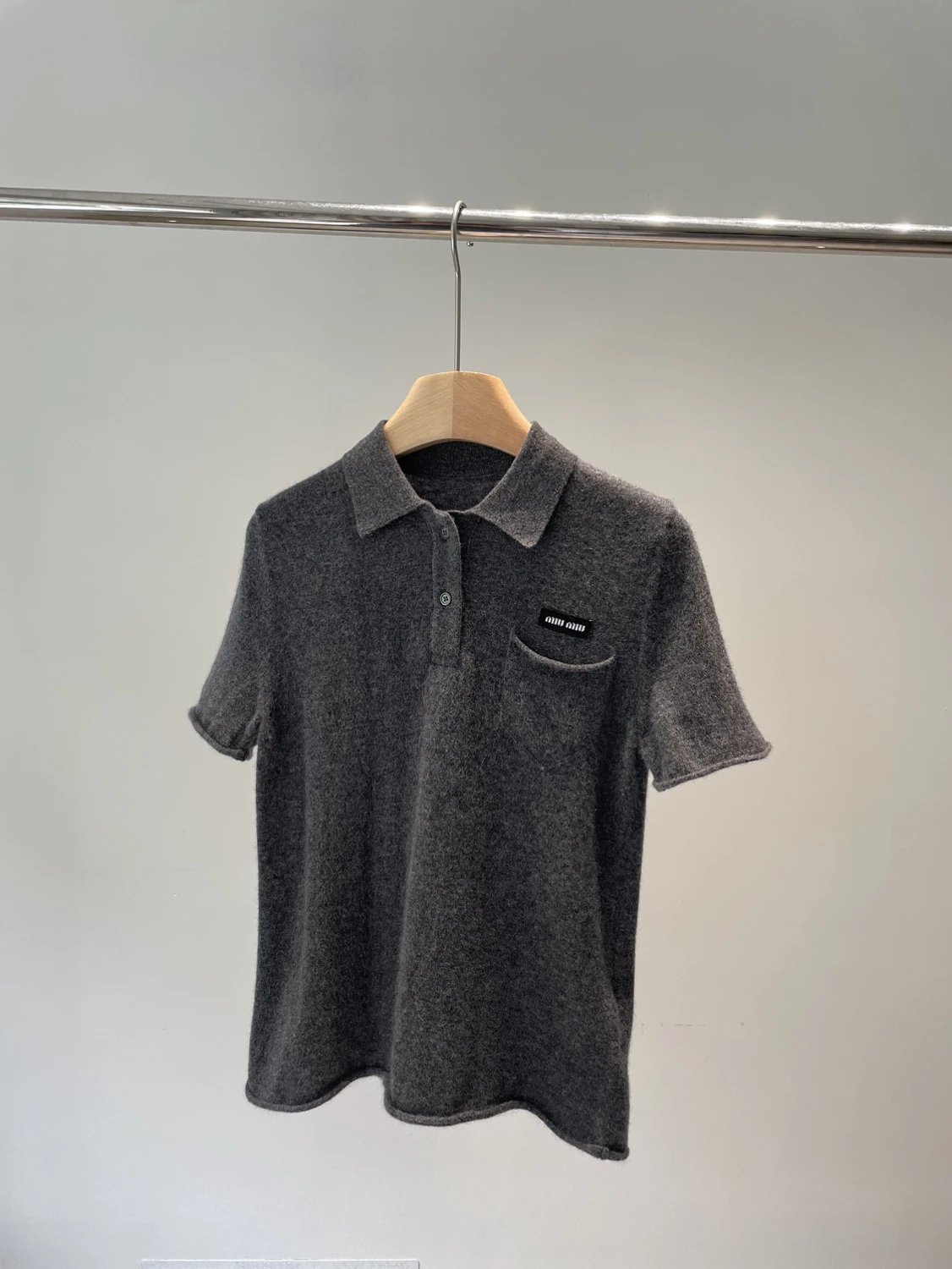 重磅渠道 miu卷边羊绒短袖 知识分子MIU系polo针织 100羊绒针织 可盐可甜