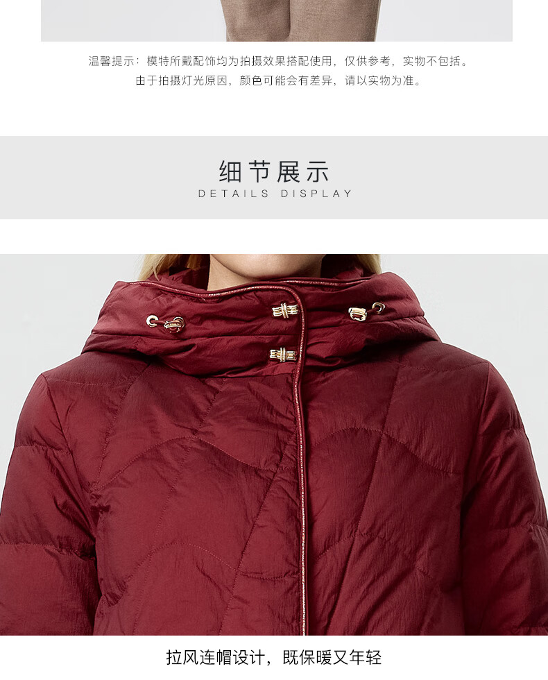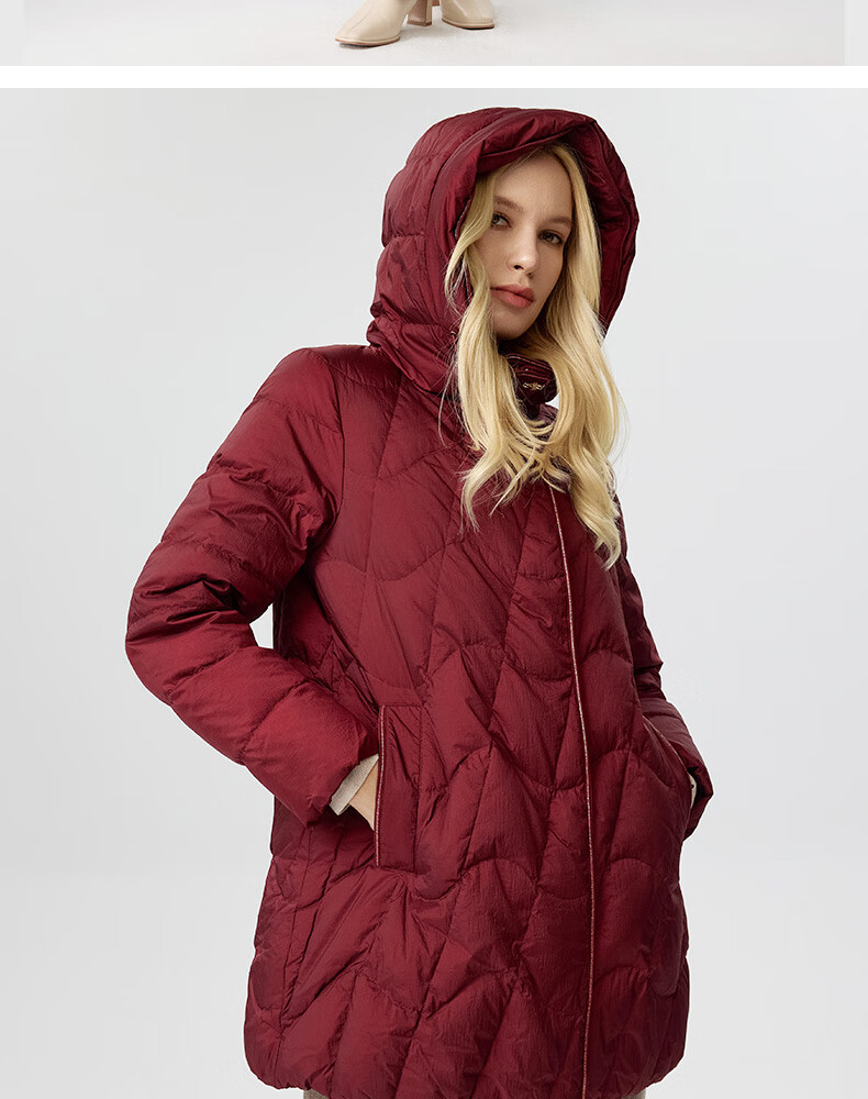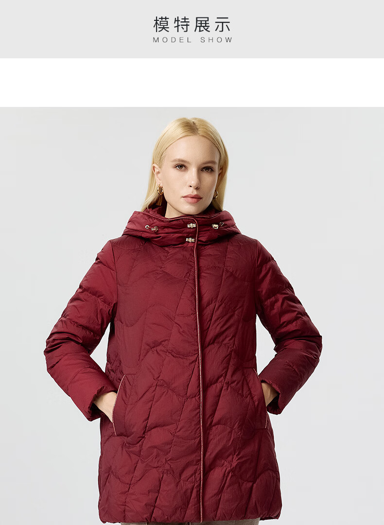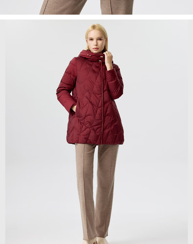 皮尔卡丹女装羽绒服女冬季小个子通勤保暖白鹅绒服P3493Y3412T0