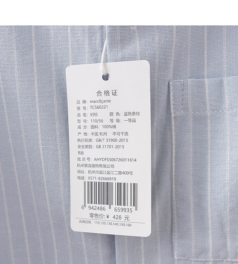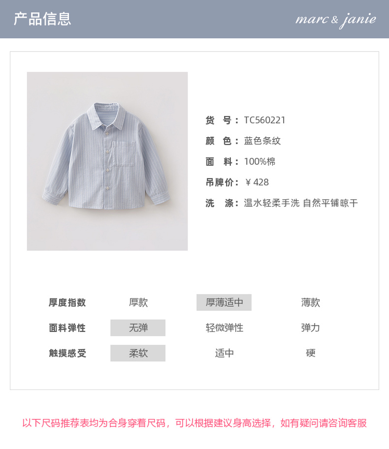 马克珍妮条纹定律 男童纯棉衬衫2026年春装新款560221