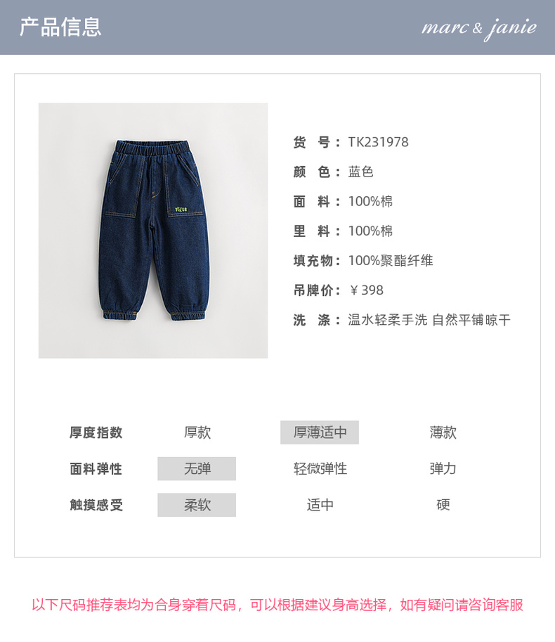 【夹棉】马克珍妮冬装新款 男童宽松束脚保暖牛仔裤 231978