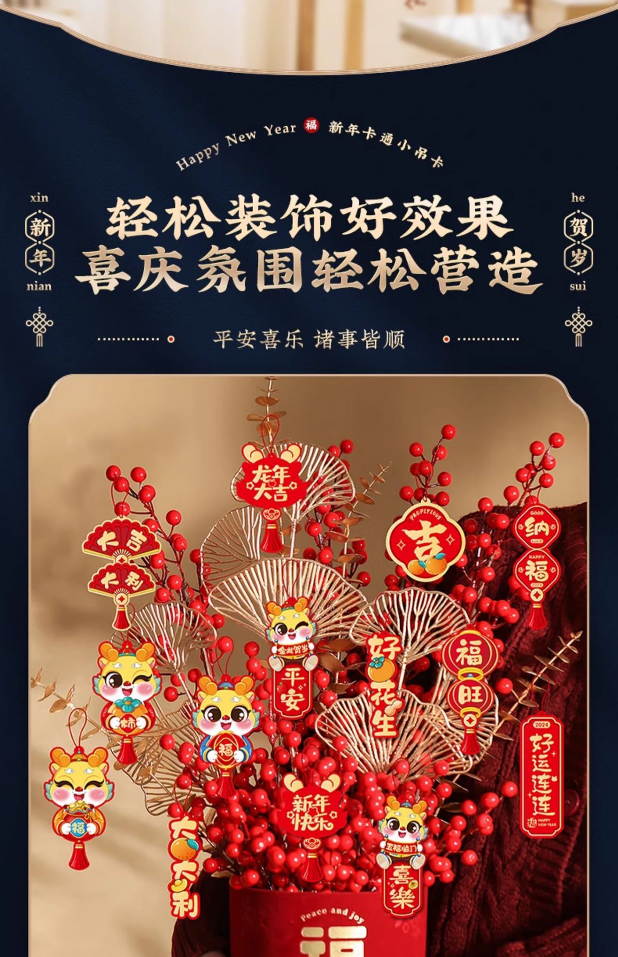 「数套可选!2024过年装饰挂件」小灯笼挂树上福字挂饰龙年春节元旦氛围家居饰品布置用品