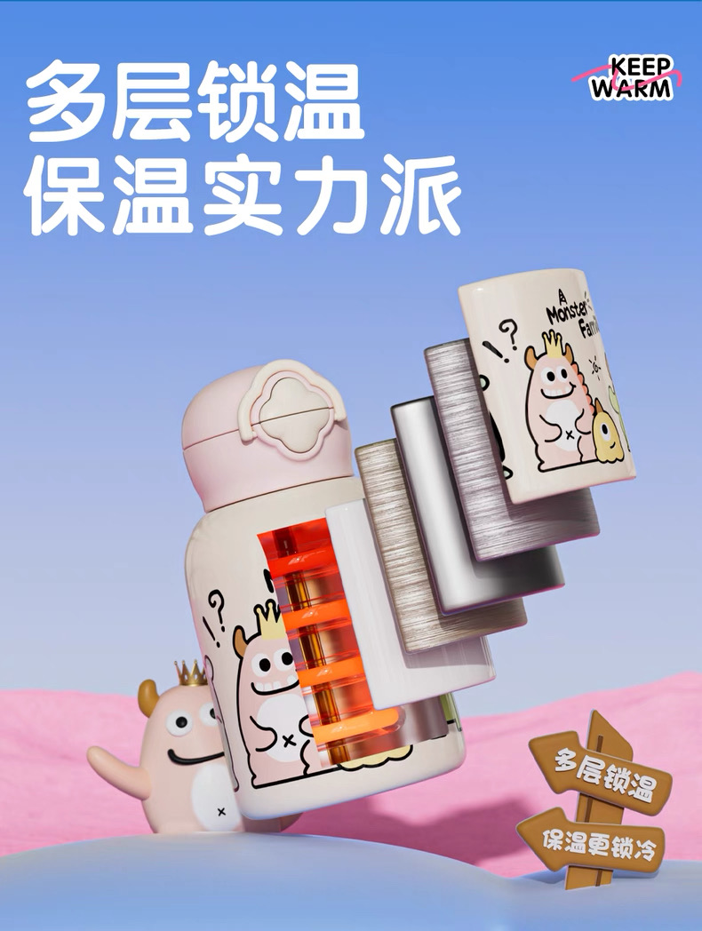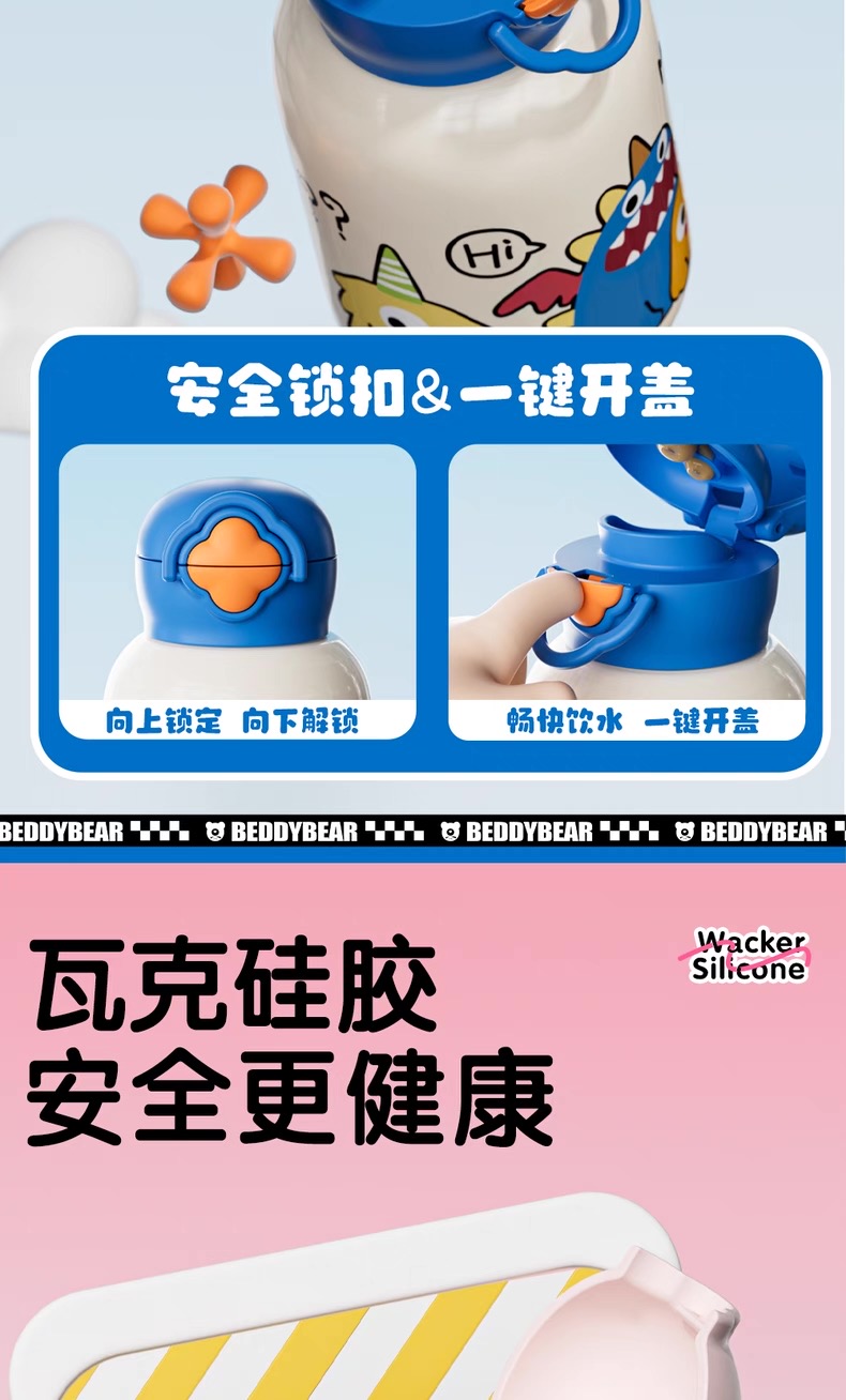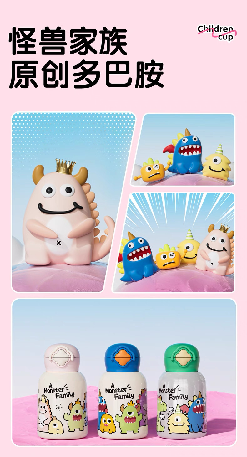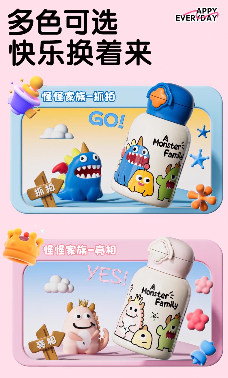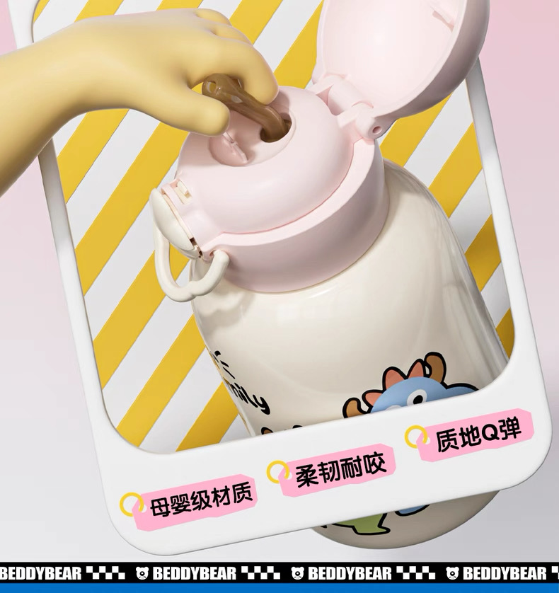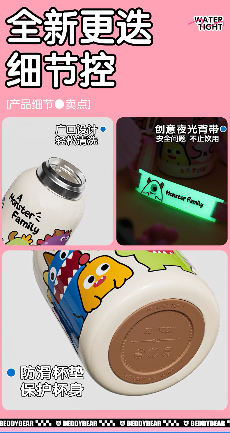 【品牌直发】【杯具熊星芒双饮怪怪家族系列】双饮保温杯540ml 儿童吸管水杯水壶一盖双饮杯可爱幼儿园316不锈钢