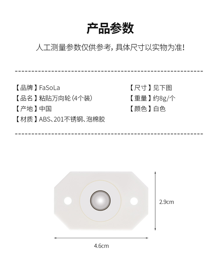 FaSoLa万向轮轮子静音滑轮滚珠式可粘贴脚轮搬家具移动底座小车轮