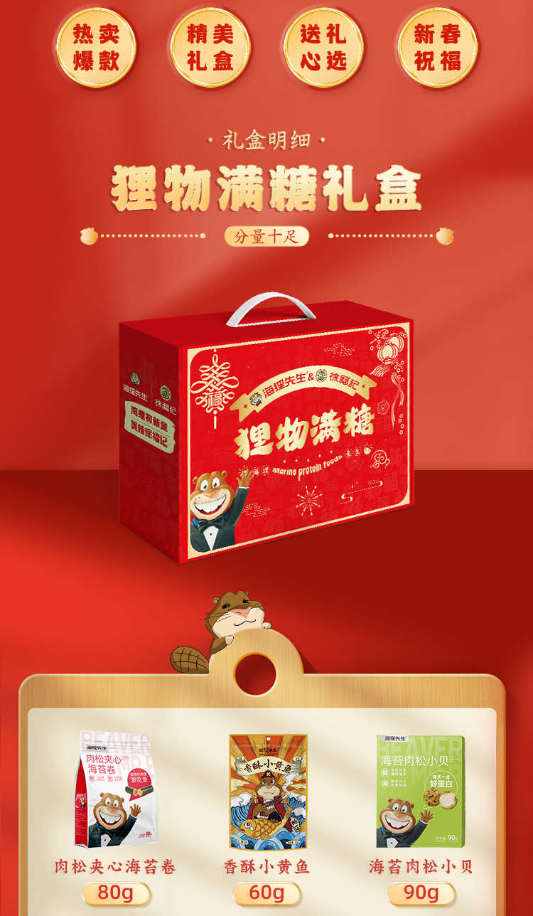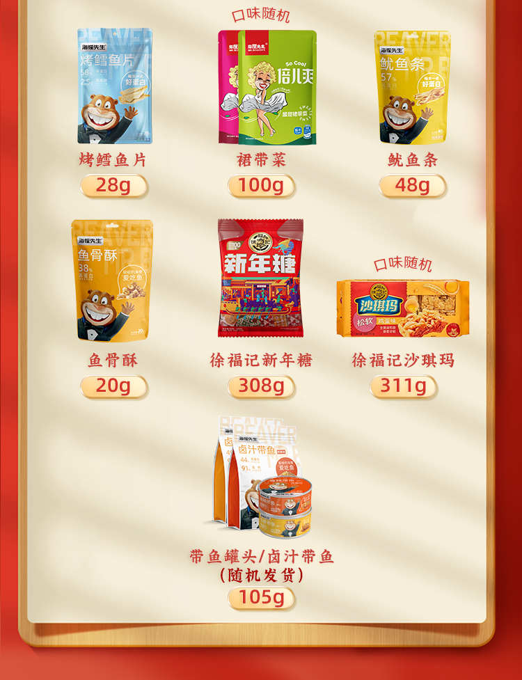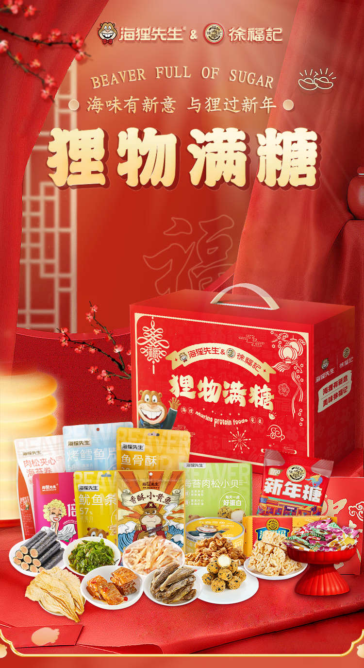 海狸先生&徐福记联名款新春年货糖果糕点海味零食大礼包JL-X1(1150g)