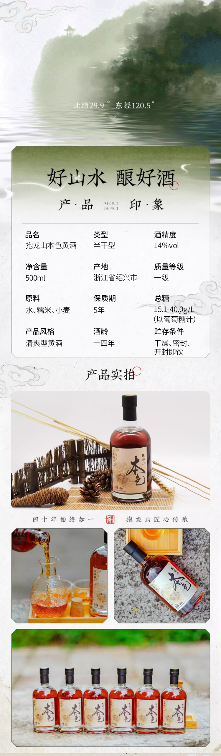 抱龙山本色黄酒500ml