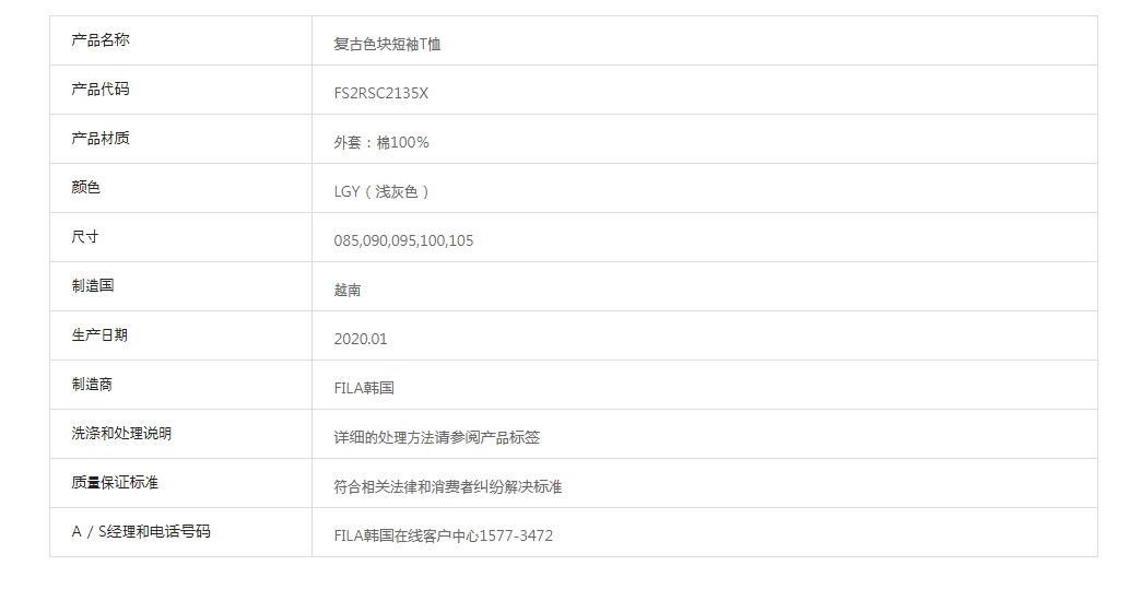 FILA斐乐韩国复古色块短袖T恤FS2RSC2135X_LGYJPY带授权招加盟代理