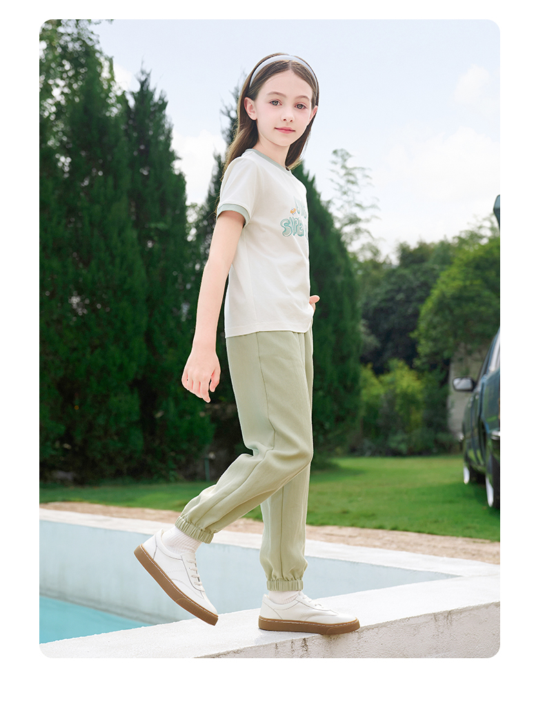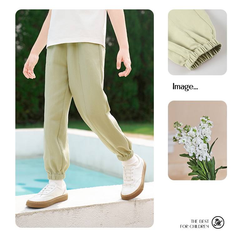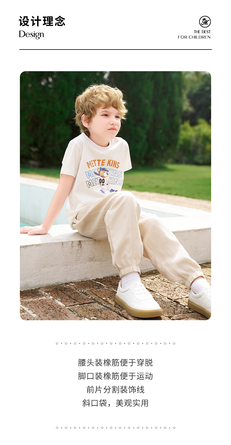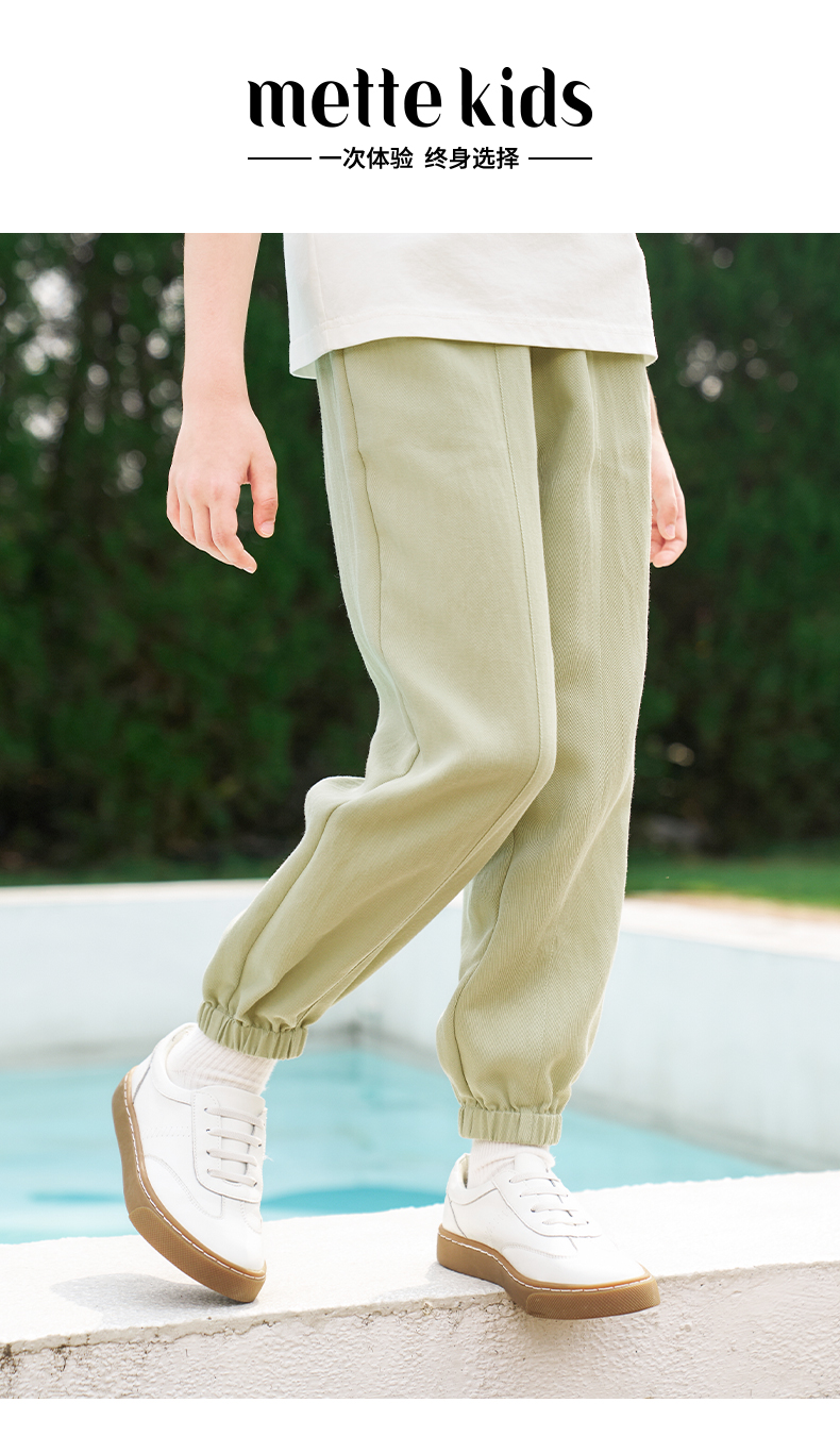 mettekids儿童裤子2024春夏新款女童束脚裤男童休闲宽松运动长裤