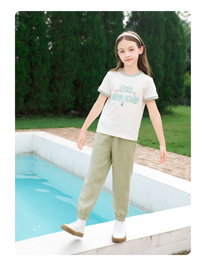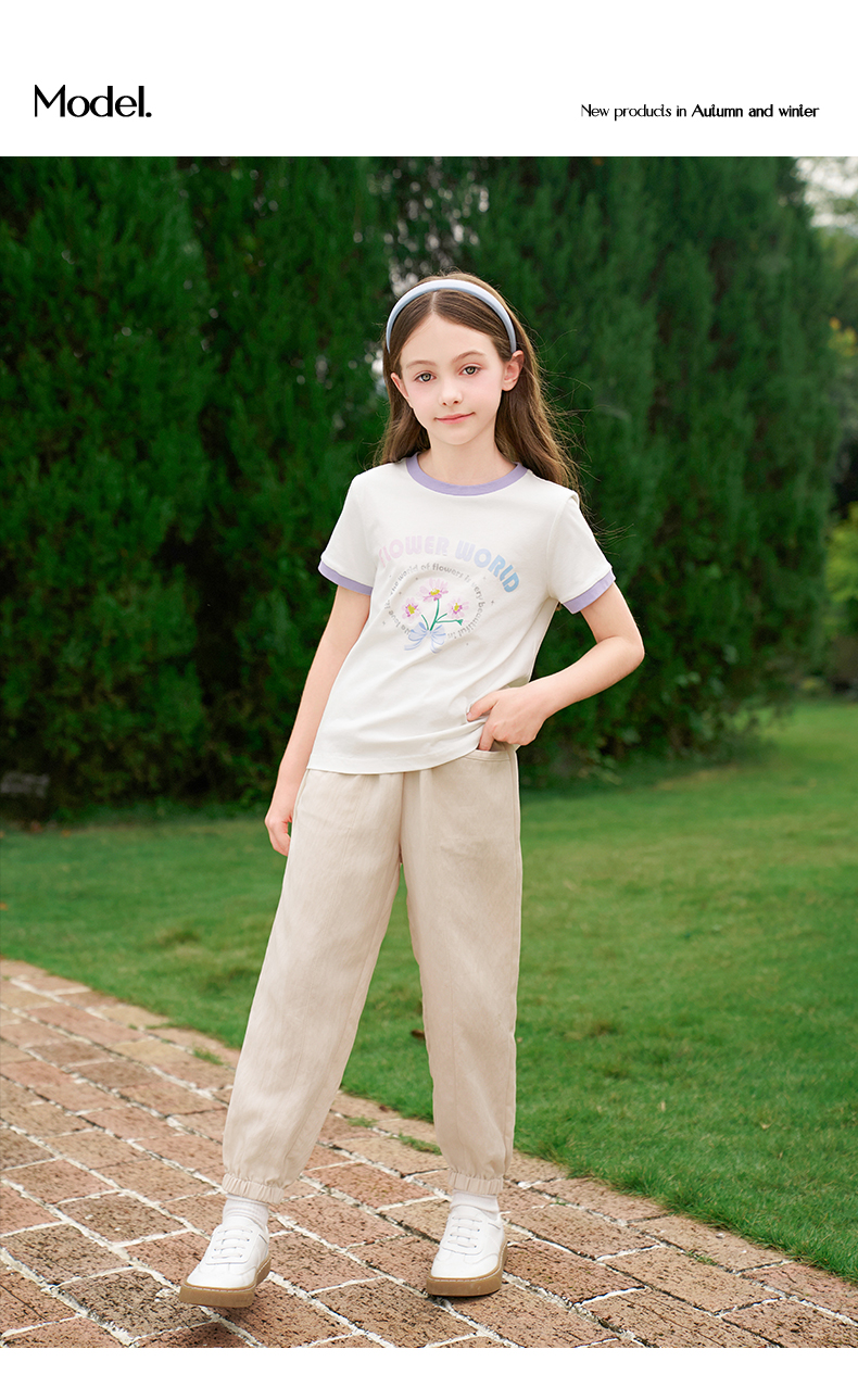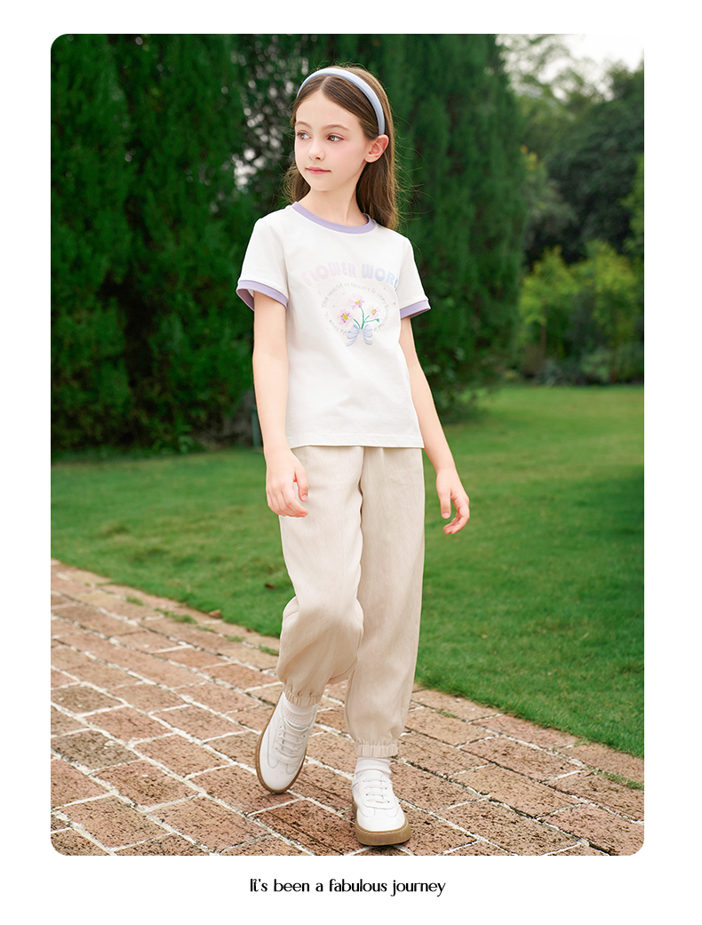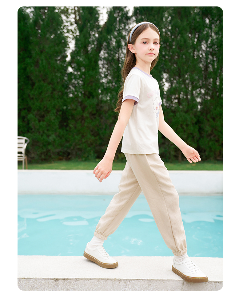 mettekids儿童裤子2024春夏新款女童束脚裤男童休闲宽松运动长裤