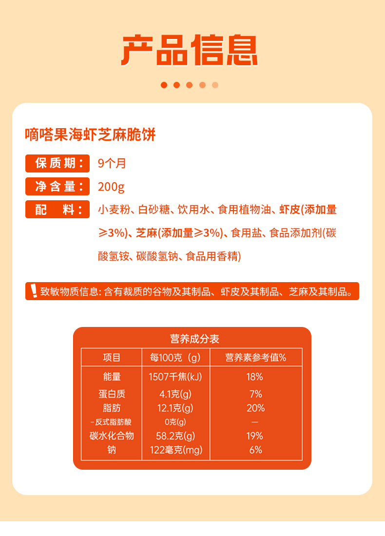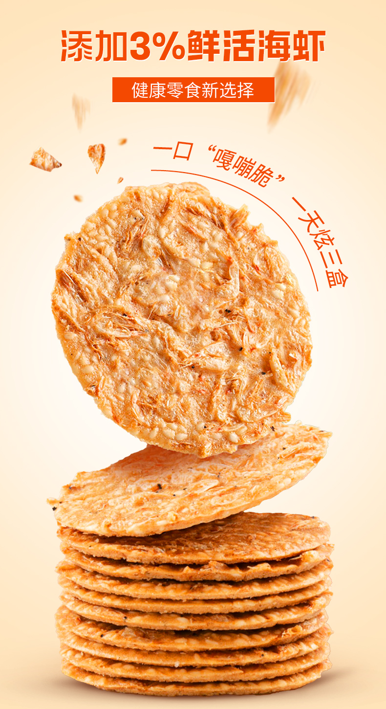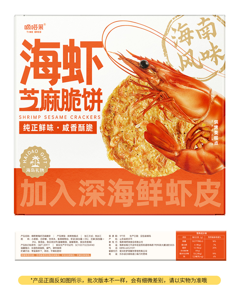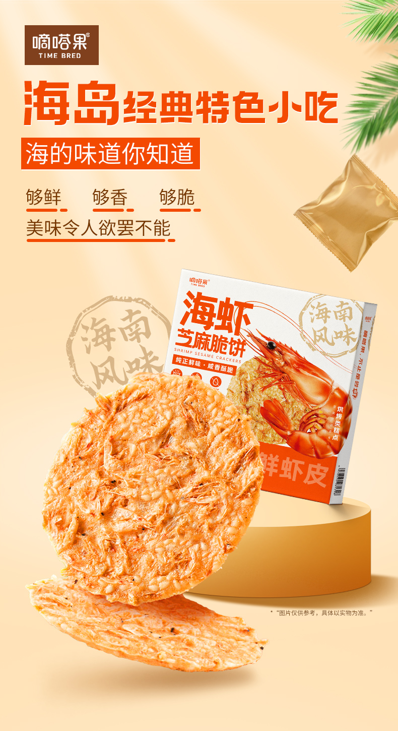 嘀嗒果海虾芝麻脆饼早餐下午茶薄饼海岛风味零食虾米香脆饼干200g