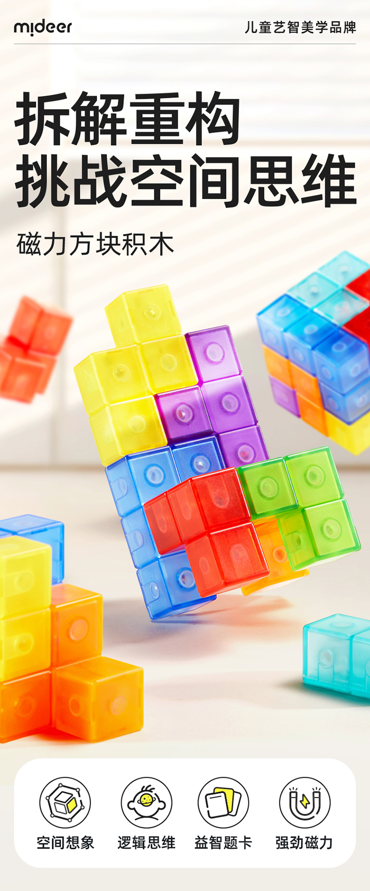 【丸丫专属】mideer弥鹿立体磁力吸积木0到3岁儿童玩具方块益智大颗粒宝宝礼物
