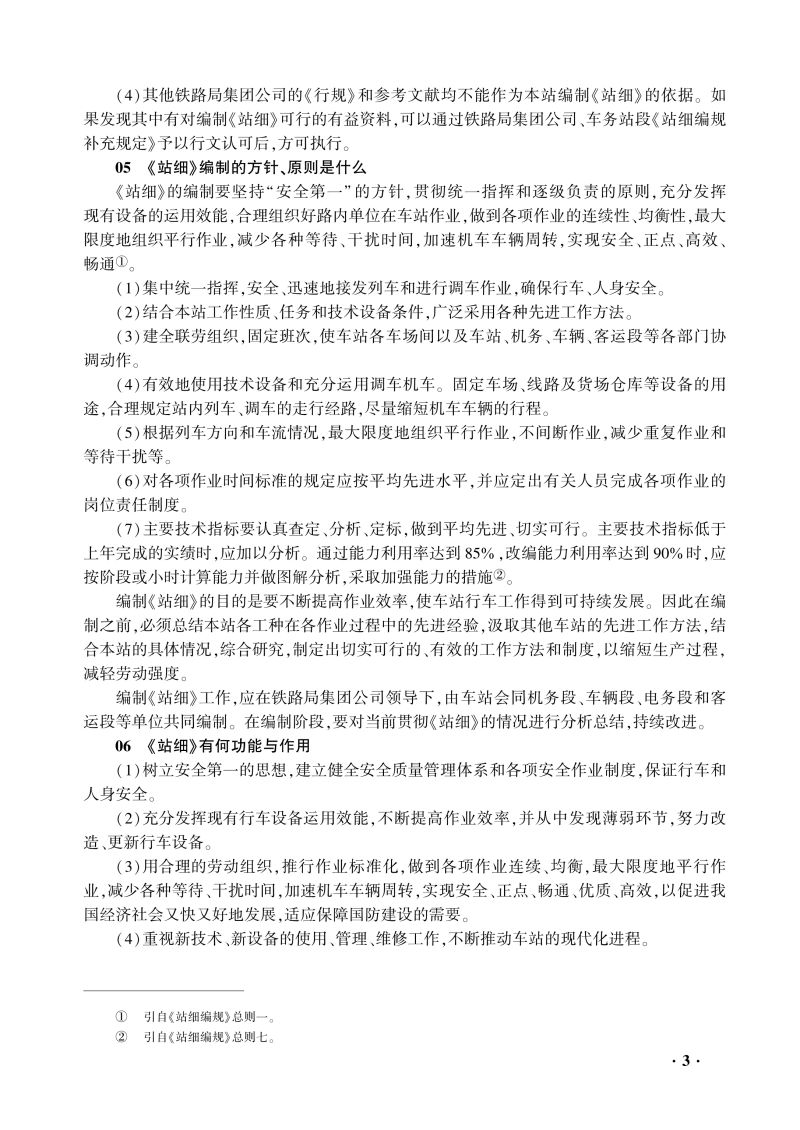 编制与学习》是《车站行车工作细则》(以下简称《站细》)编制与学习的指南。本书阐述了《站细》的内容和编制方法,是车务站段技术管理人员必备的工具书;论述了车站行车管理及工作组织的基础理论、经验和方法,是接发列车和调车作业的行动指南,是技术教育的教科书,也是铁路各级领导、铁路院校师生、铁路爱好者等非行车人员间接了解、学习铁路车站行车管理知识和技术作业方法的指南。此书以《技规》为准绳,参考了前铁道部、铁路总公司发布的规章制度和部分铁路局集团公司的《行规》《行细》、部分车站的《站细》,力求全面系统、说理准确、可行性强。以期望能使读者编制《站细》的水平得以提高,能解决一些车站作业中的实际问题。