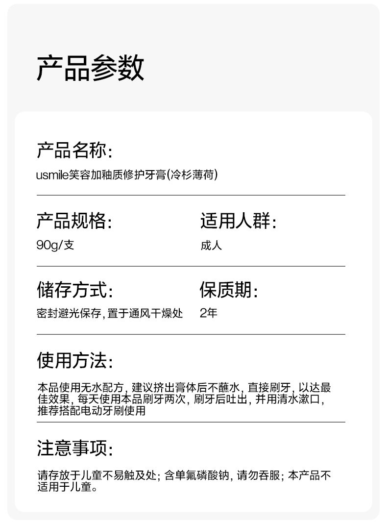 usmile笑容加 牙釉质修护牙膏90g(冷杉薄荷)