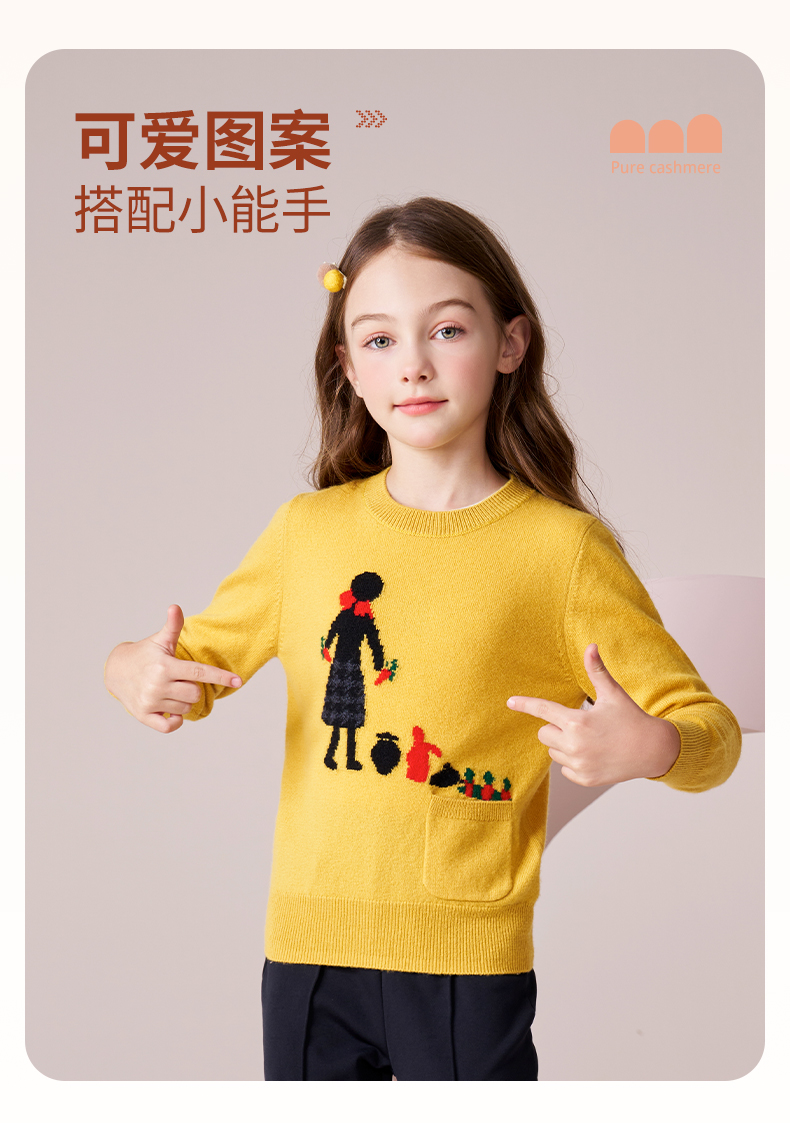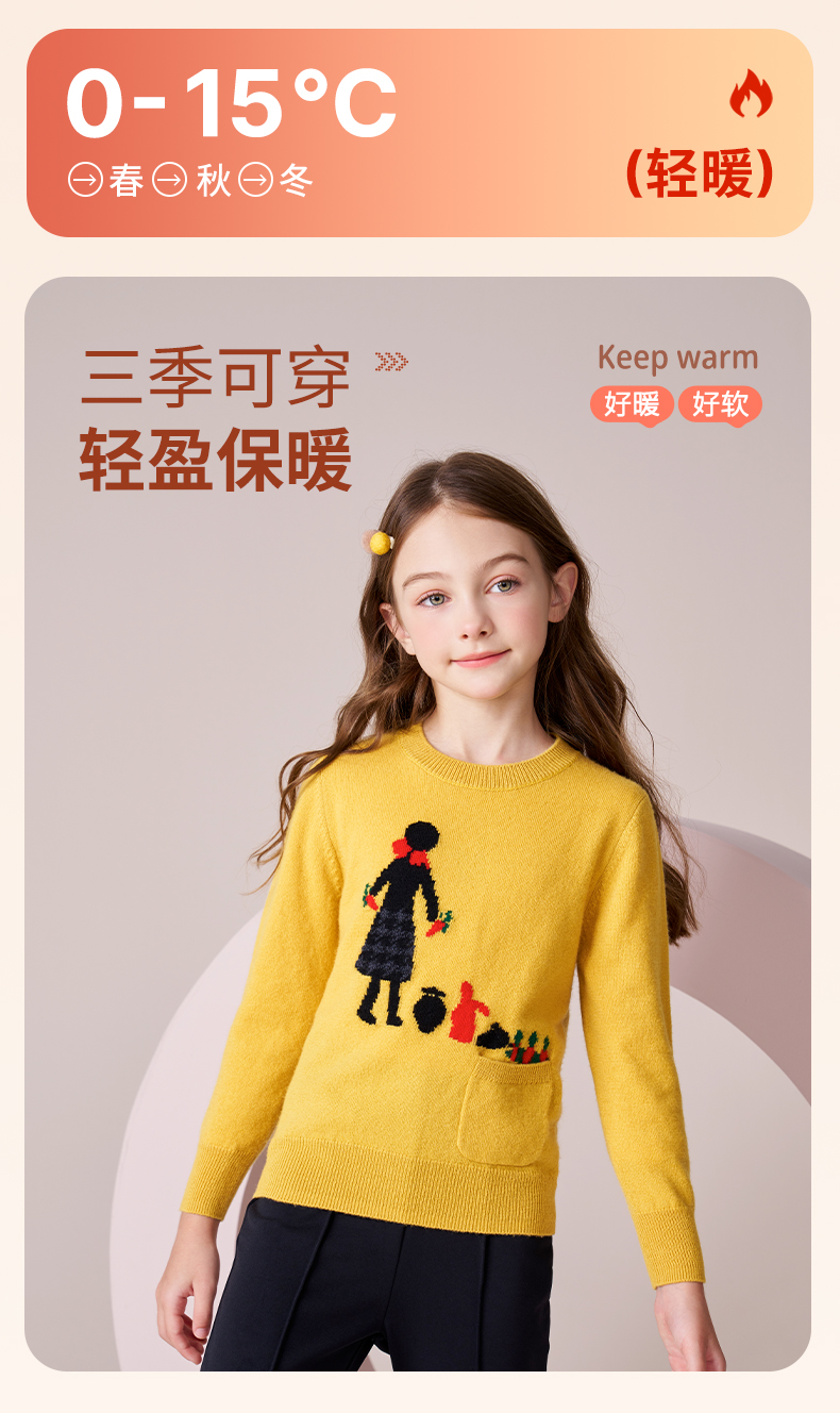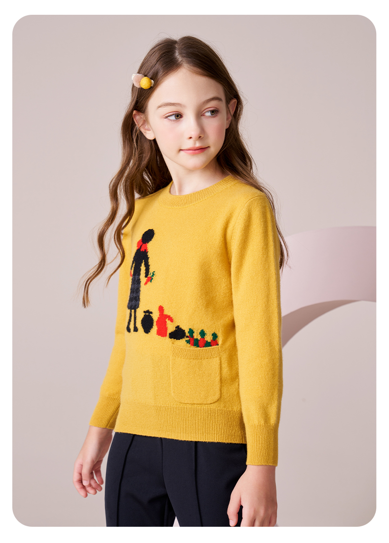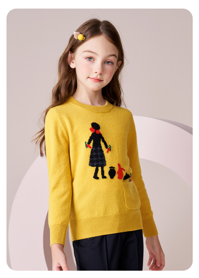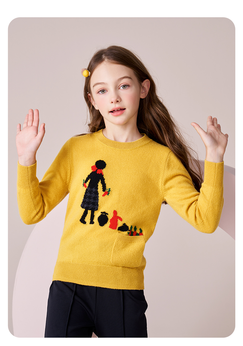 mettekids女童羊绒衫2023秋冬新款打底童装毛衣儿童圆领针织衫