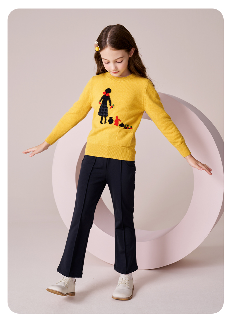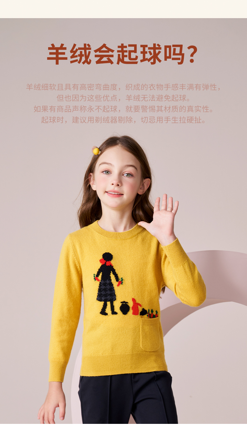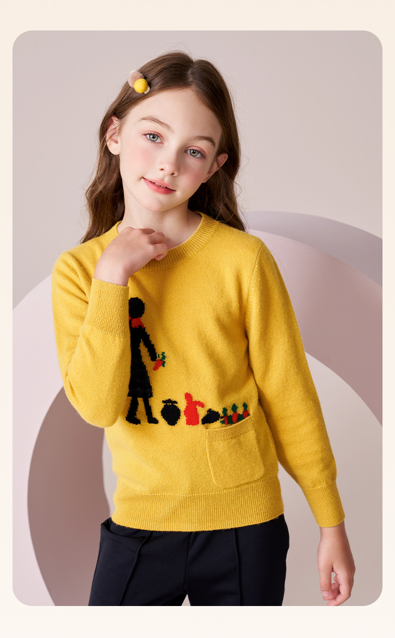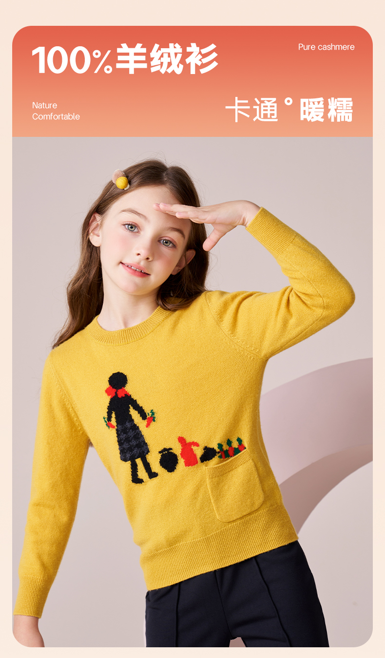 mettekids女童羊绒衫2023秋冬新款打底童装毛衣儿童圆领针织衫
