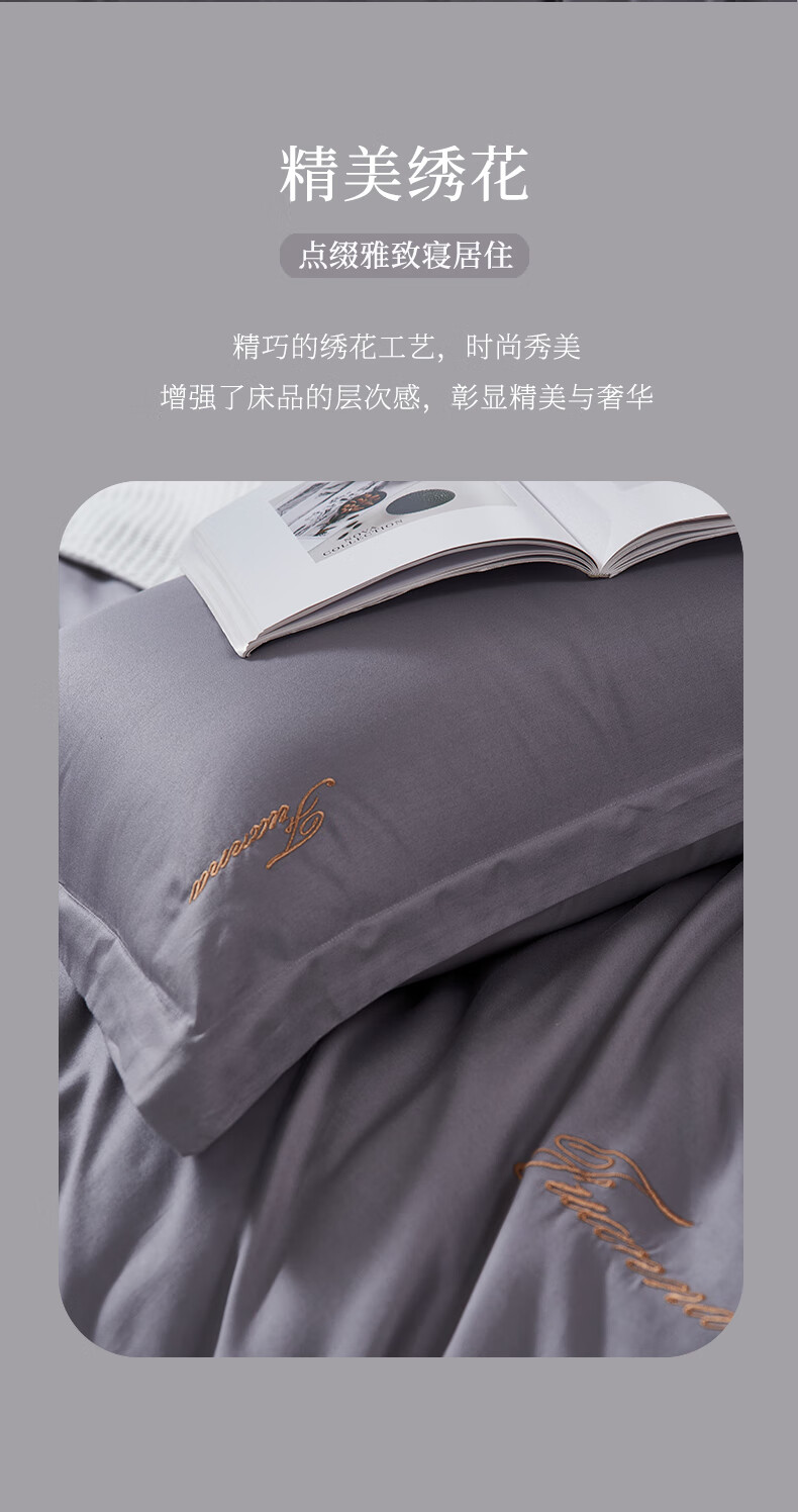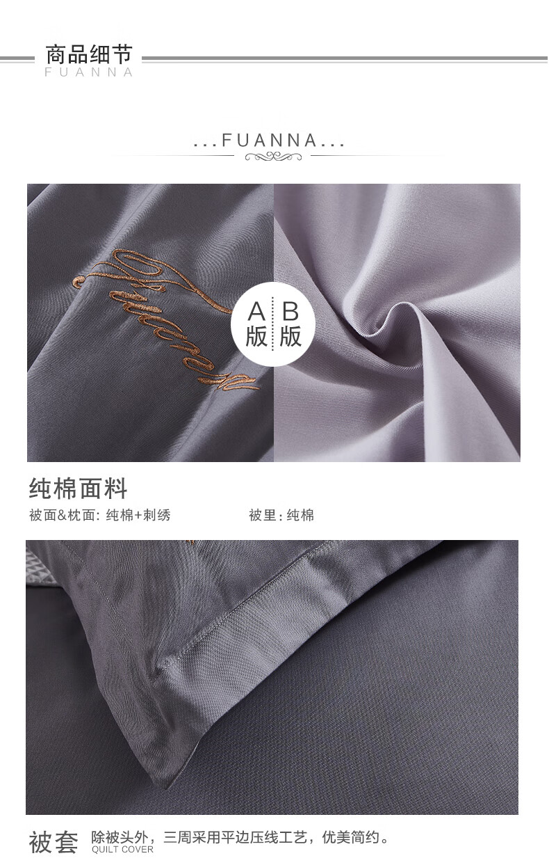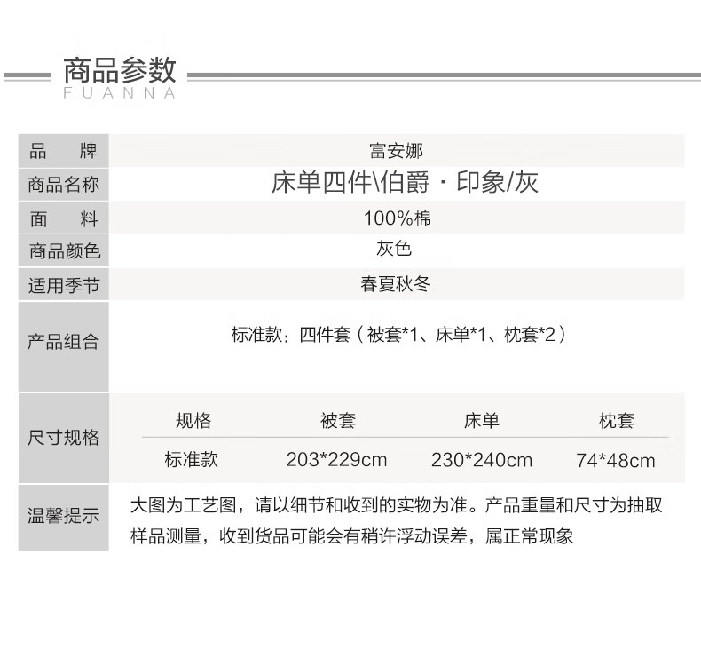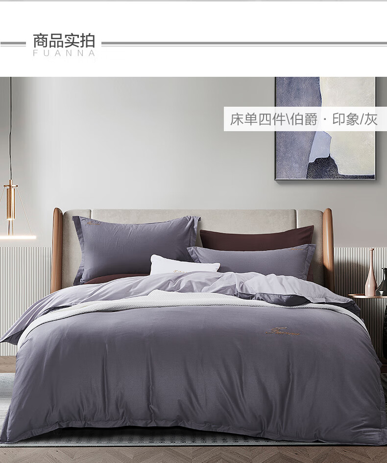 【纯棉】富安娜素绣纯棉床单四件套/伯爵·印象/灰【203*229cm】XHR