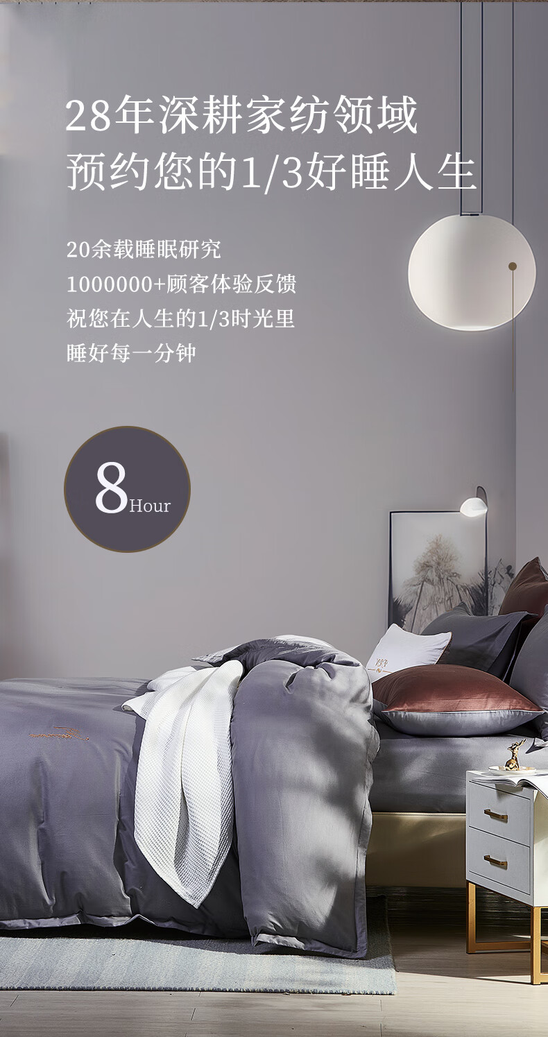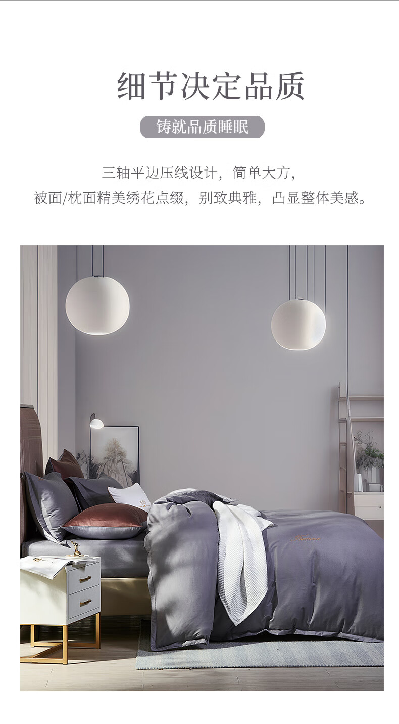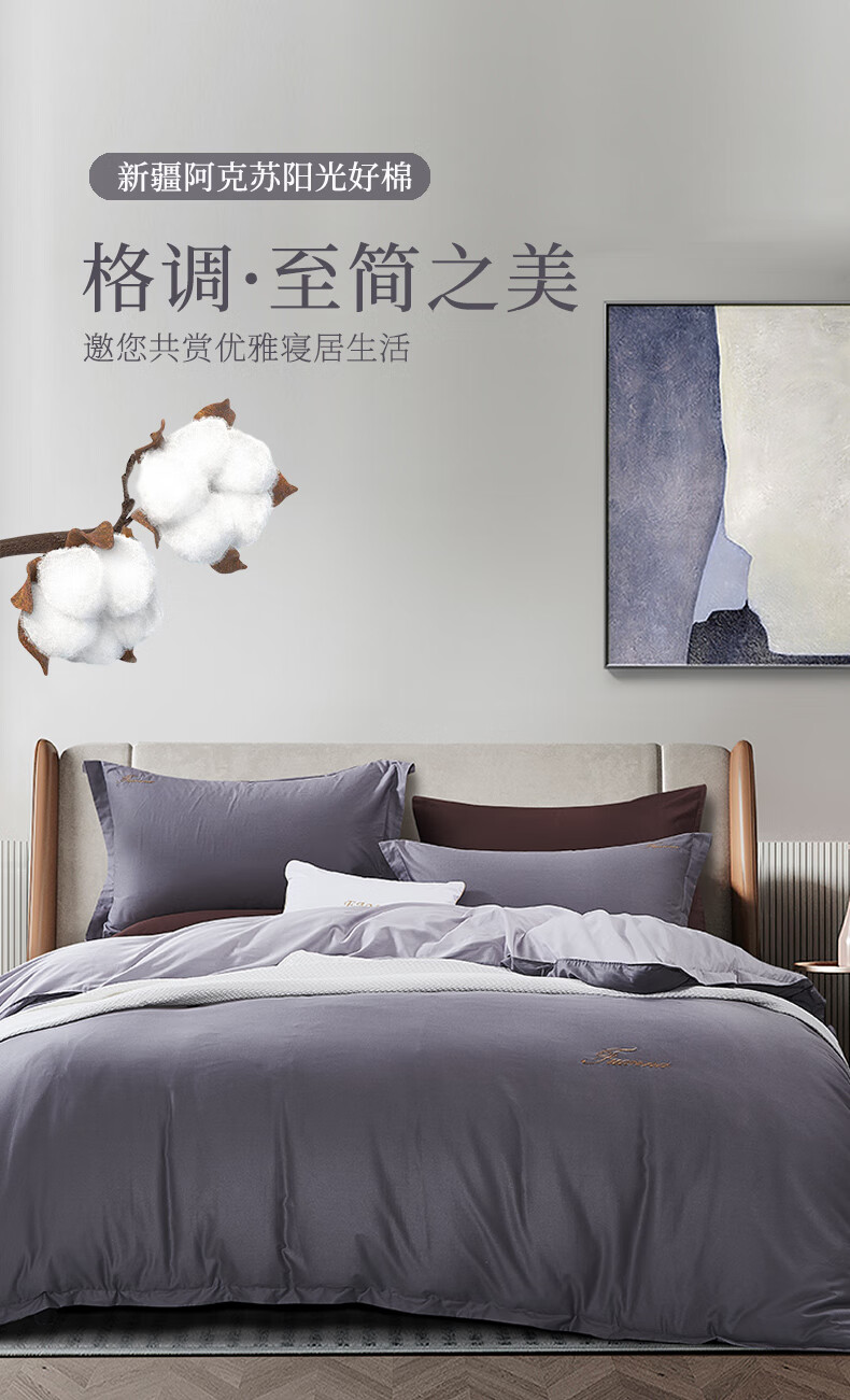 【纯棉】富安娜素绣纯棉床单四件套/伯爵·印象/灰【203*229cm】XHR