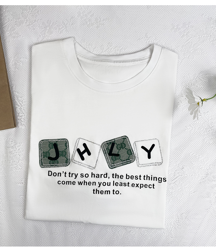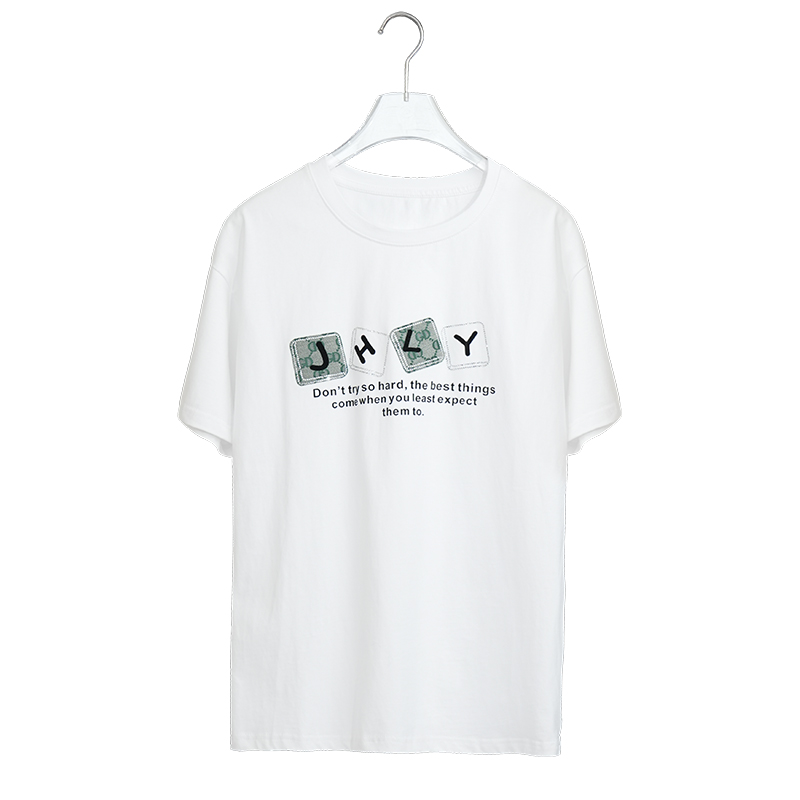 字母镶钻印花短袖T恤女宽松显瘦夏季休闲百搭上衣YXSX50318