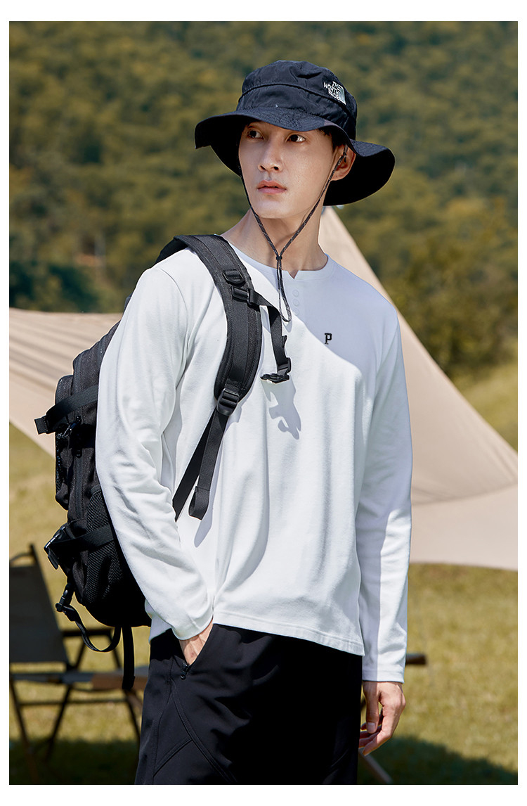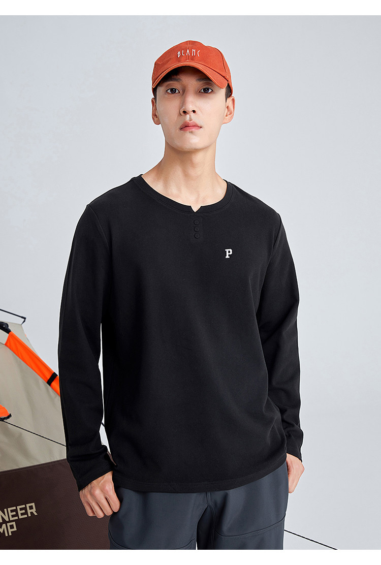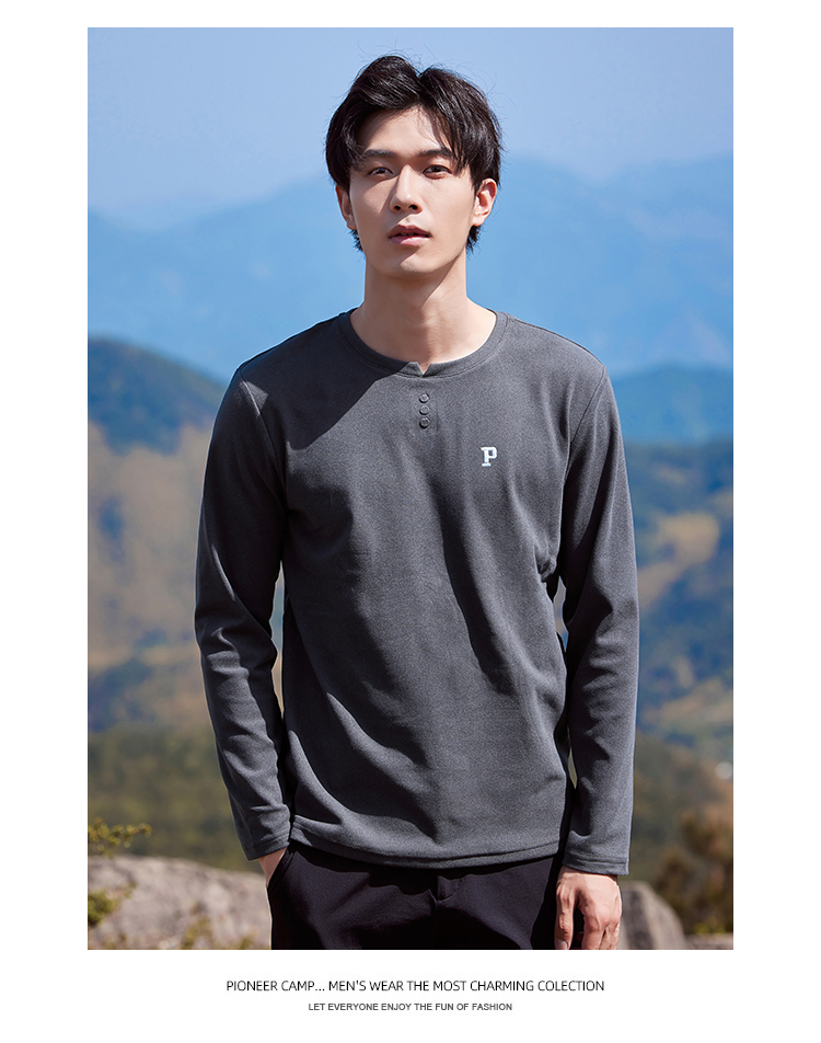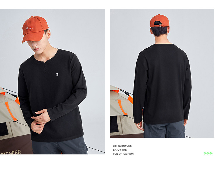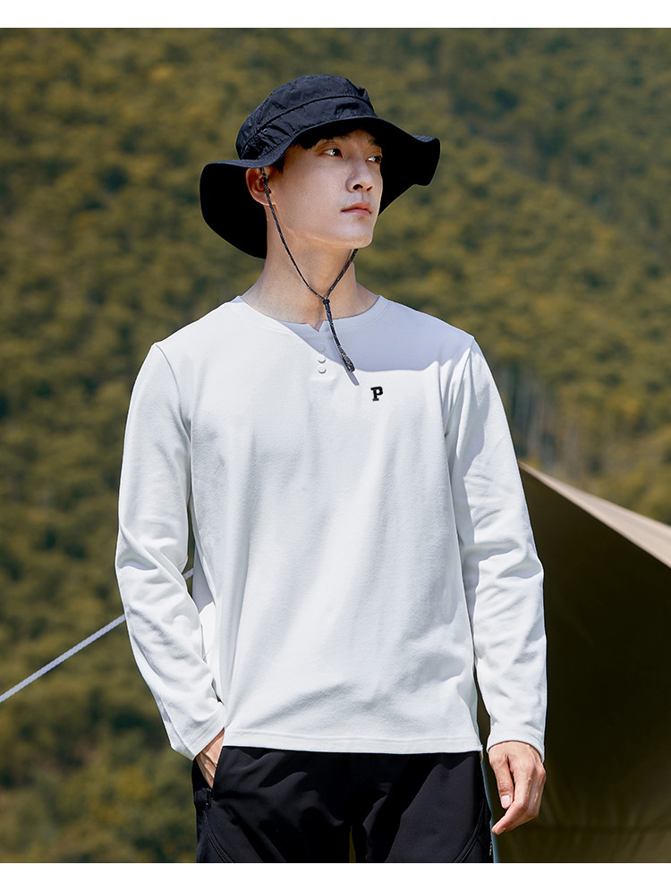 拓路者简约字母印花长袖T恤衫男秋季翻领打底衫户外百搭潮流T恤衫