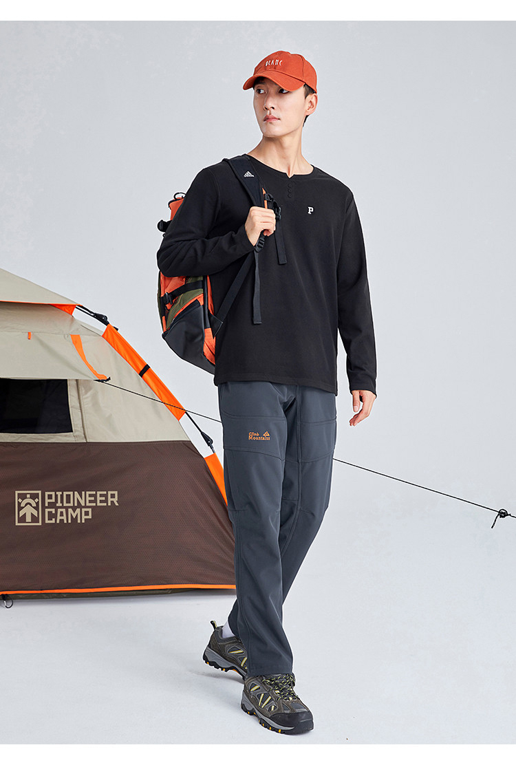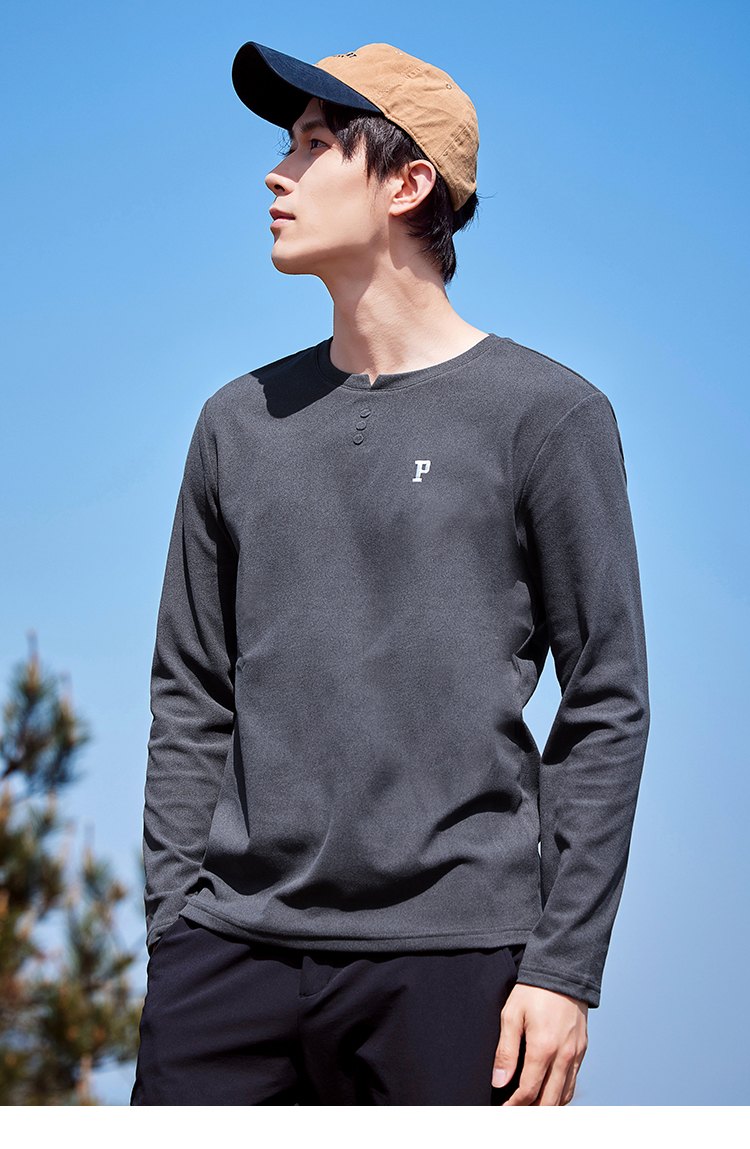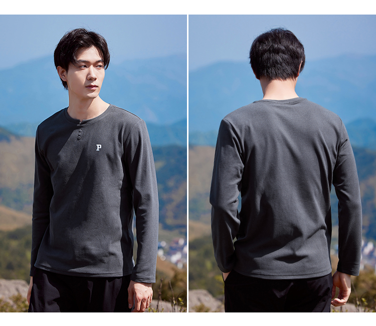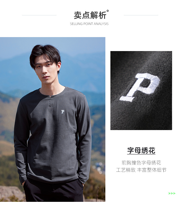 拓路者简约字母印花长袖T恤衫男秋季翻领打底衫户外百搭潮流T恤衫