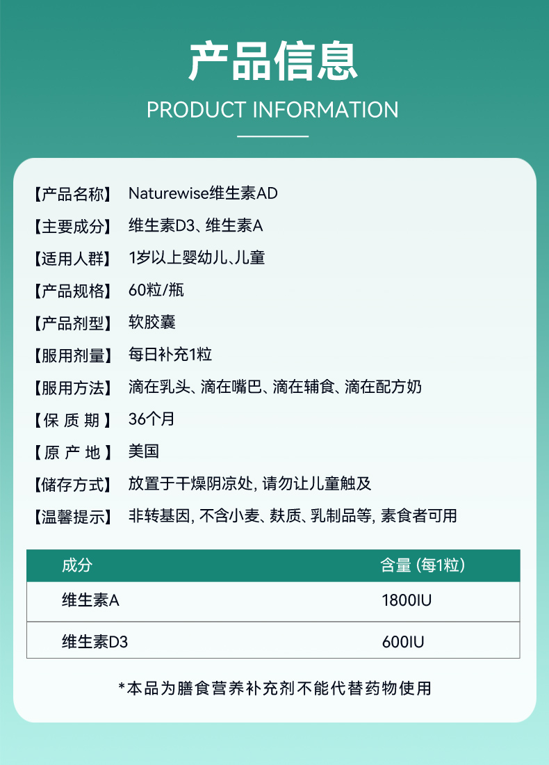 Naturewise牌维生素D3 600U+A1800U 60粒
