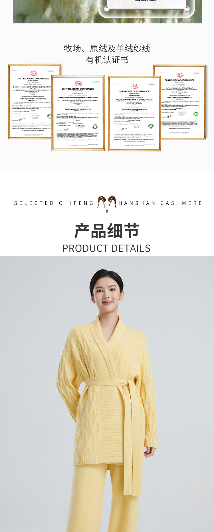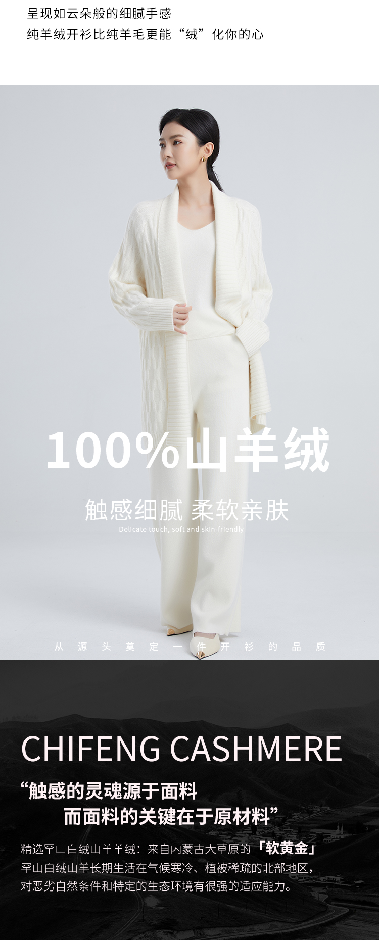 东黎羊绒是赤峰东荣集团自主品牌,自有牧场/羊绒制品全产业链优势,实现了羊绒从“牧场”到“商场”的华丽转变。