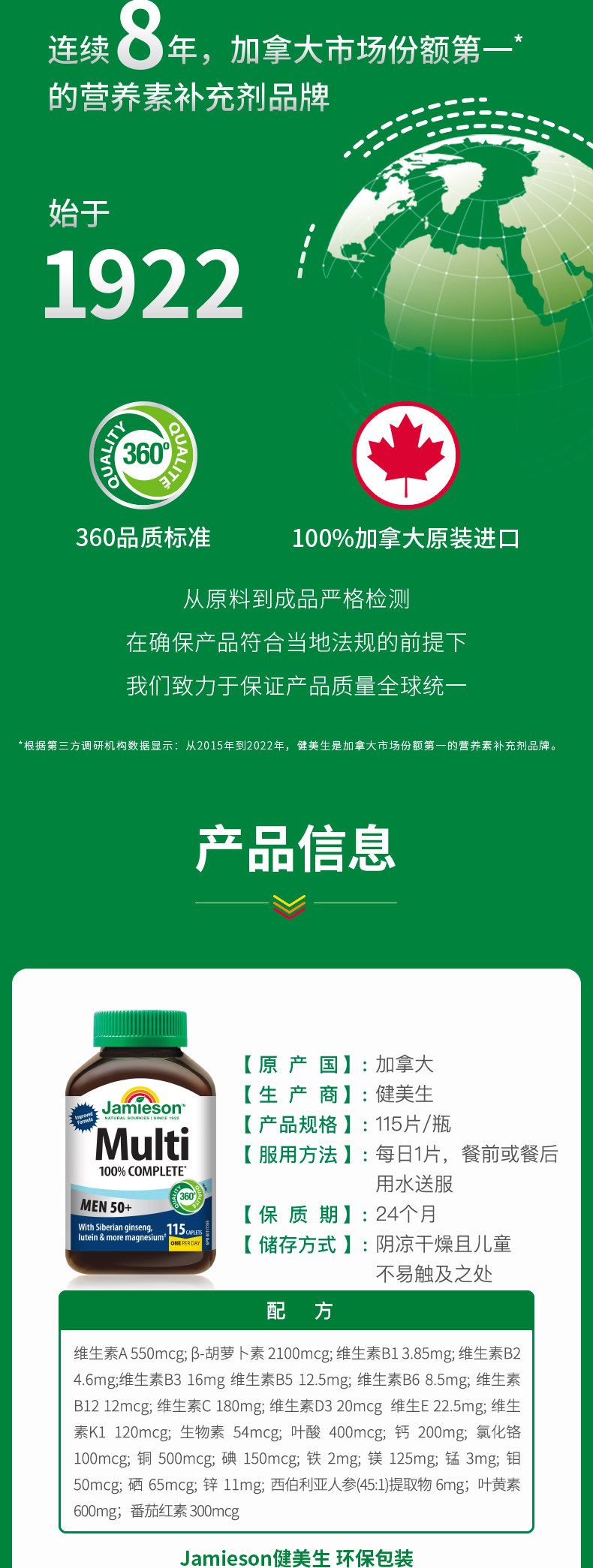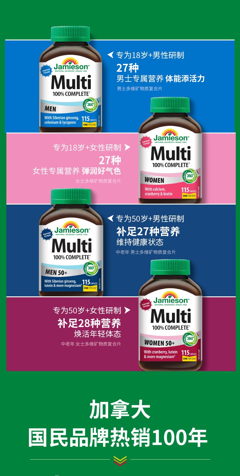 【保税仓发货】Jamieson中老年多维矿物复合片-50+男*2+50+女*2