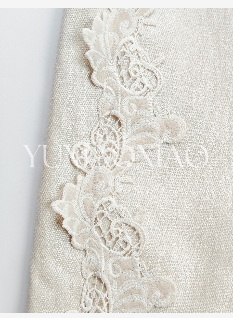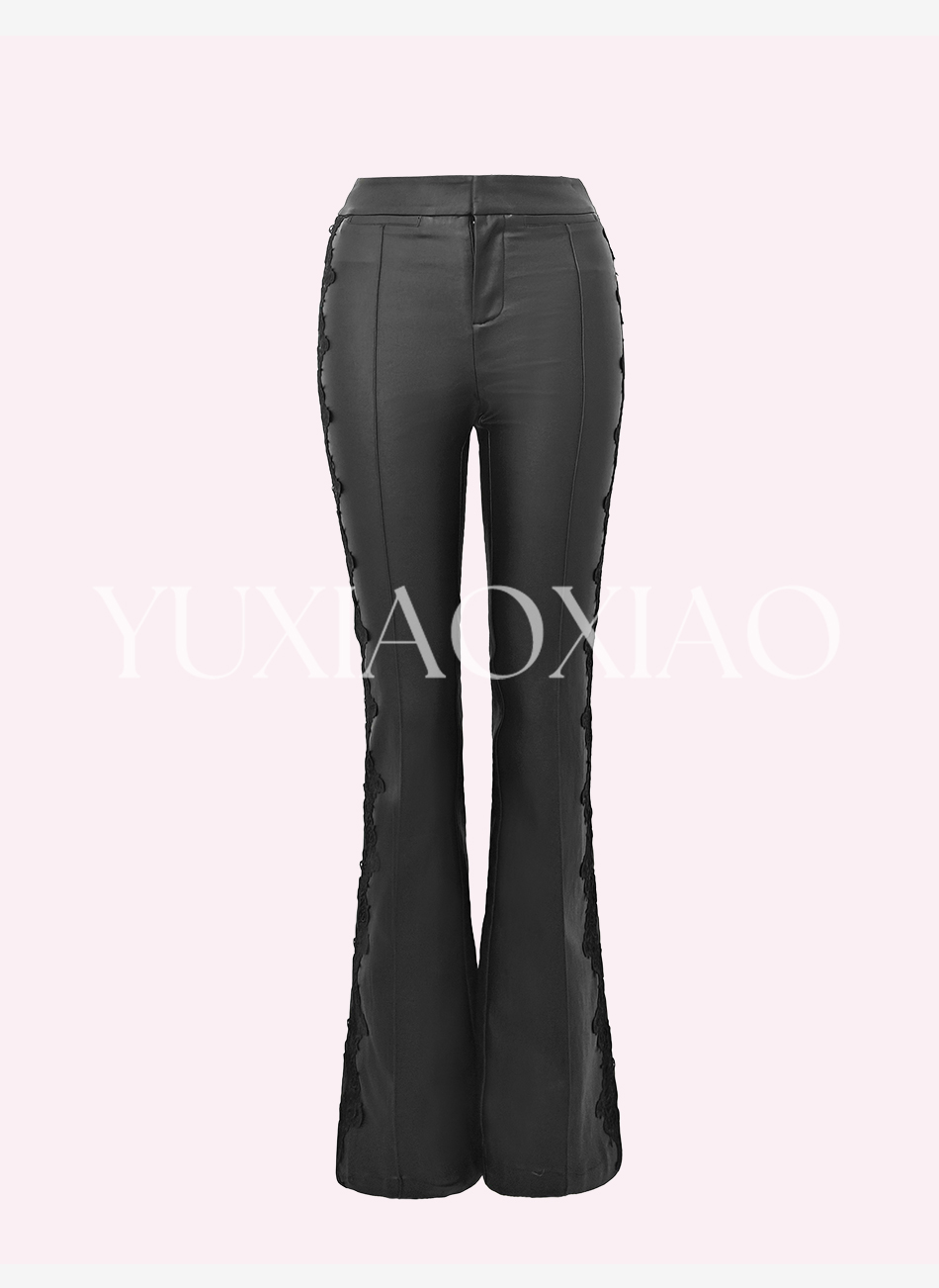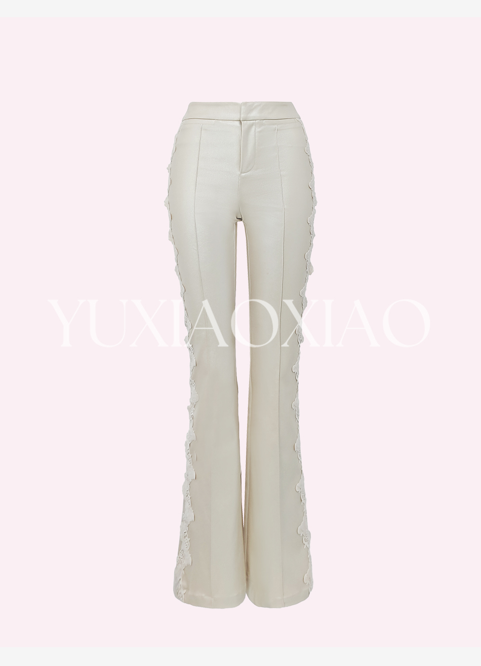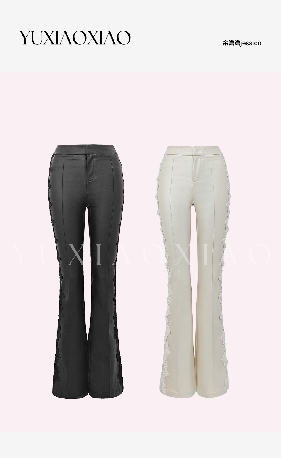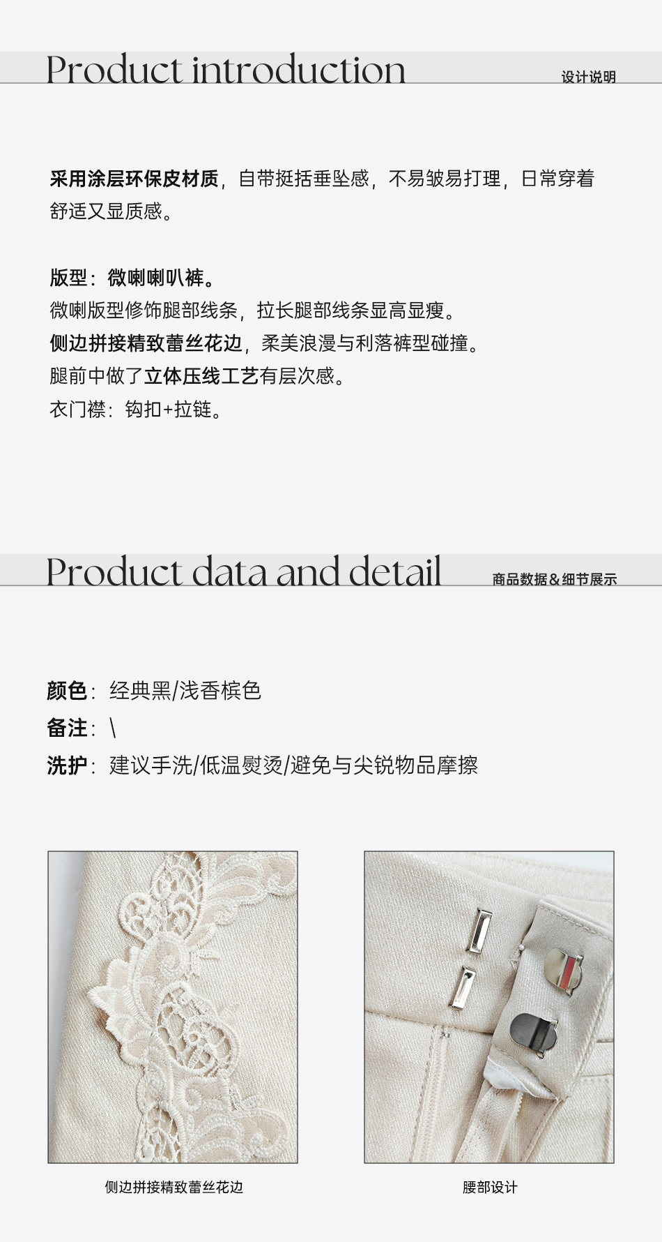 余潇潇【花魁腿精】显瘦质感拼接精致蕾丝花边显高微喇喇叭裤