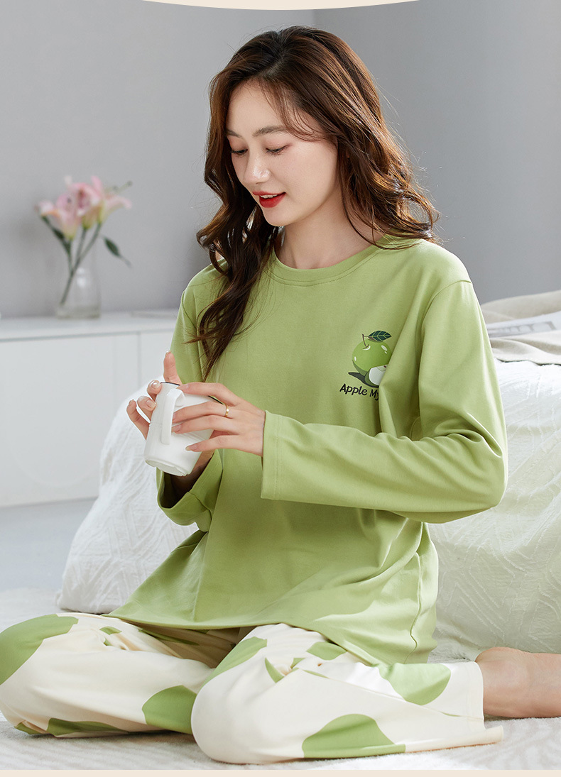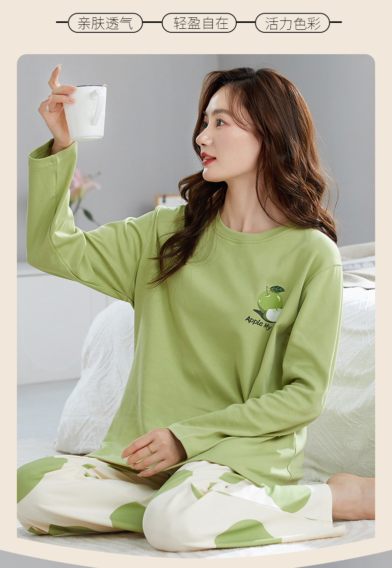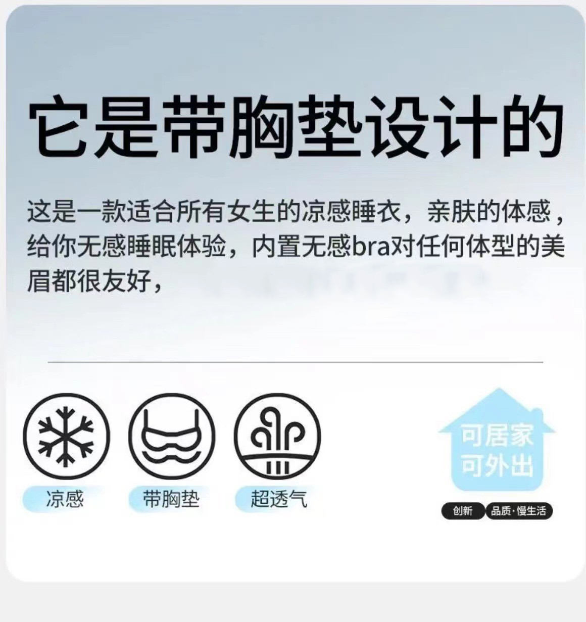秋季免穿Bra长袖家居服,纯色卡通舒适亲肤 自带胸垫外穿不尴尬 中心固定不跑杯