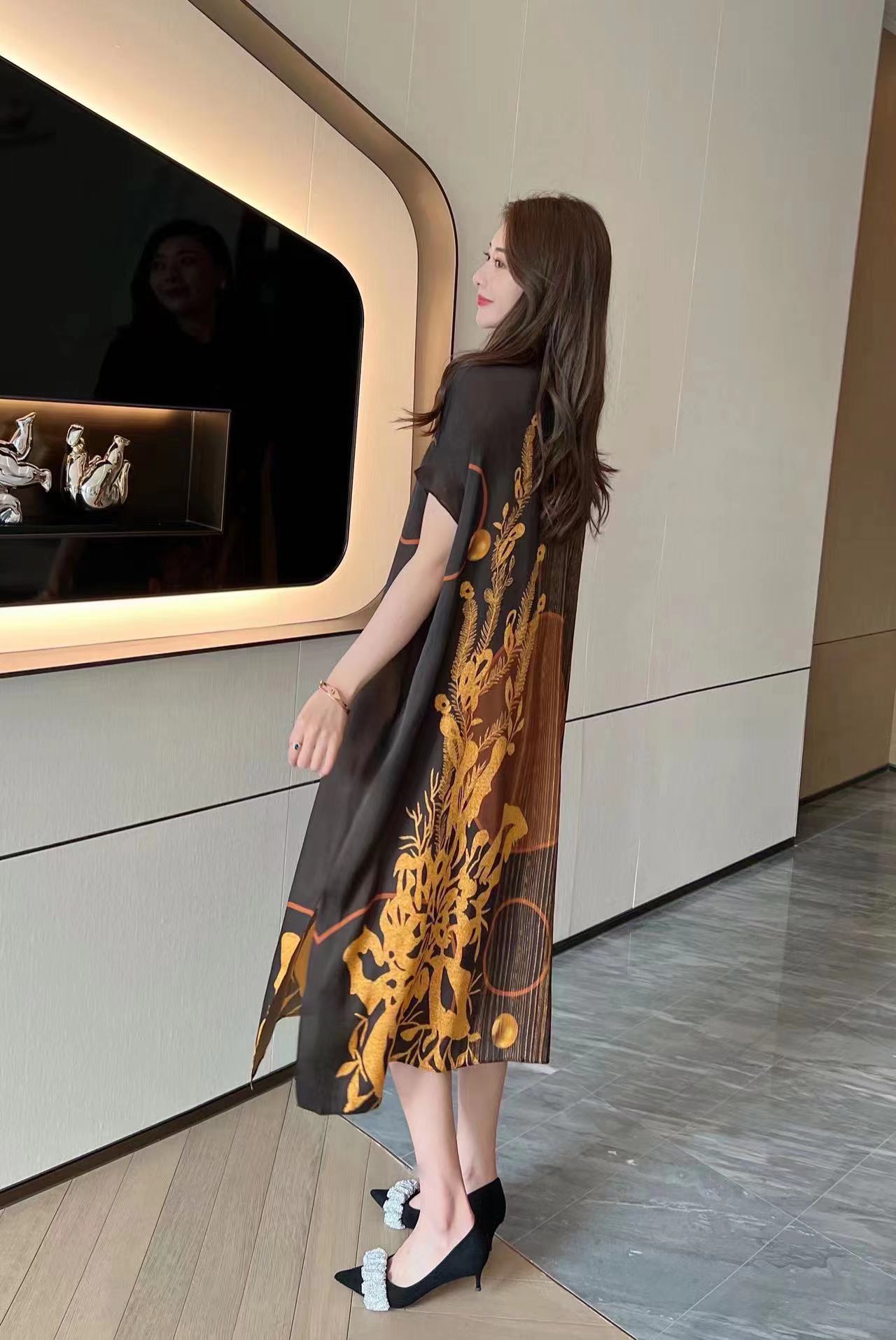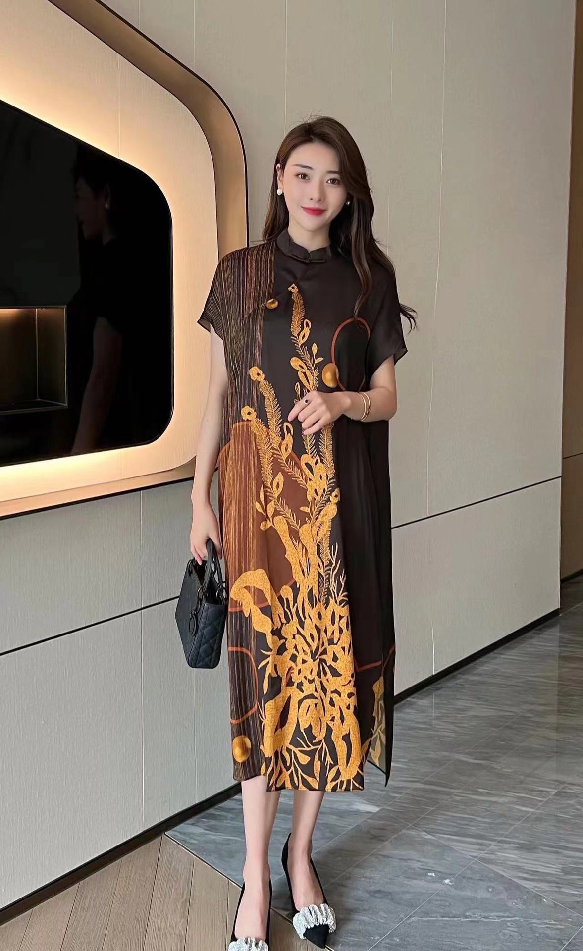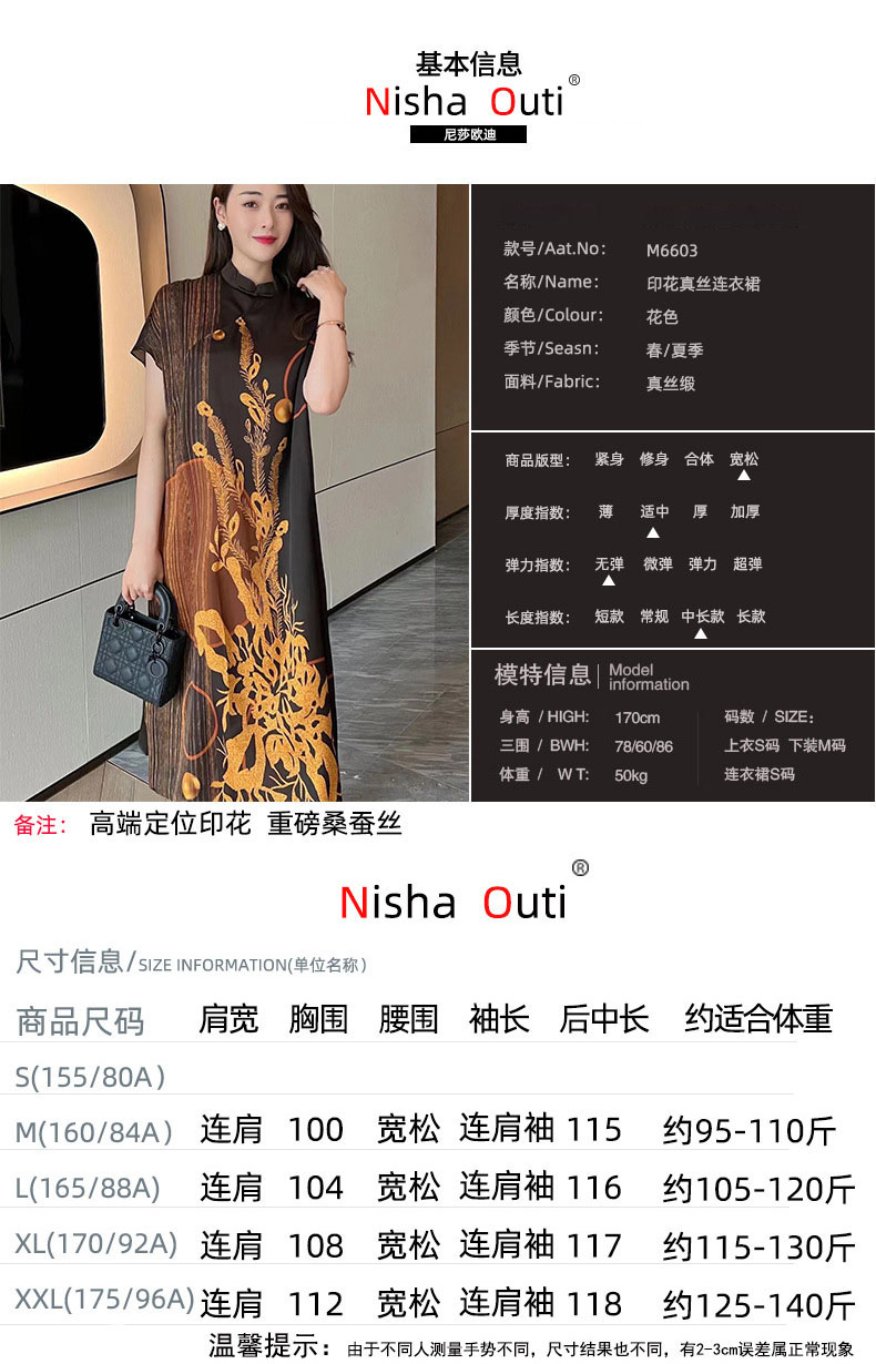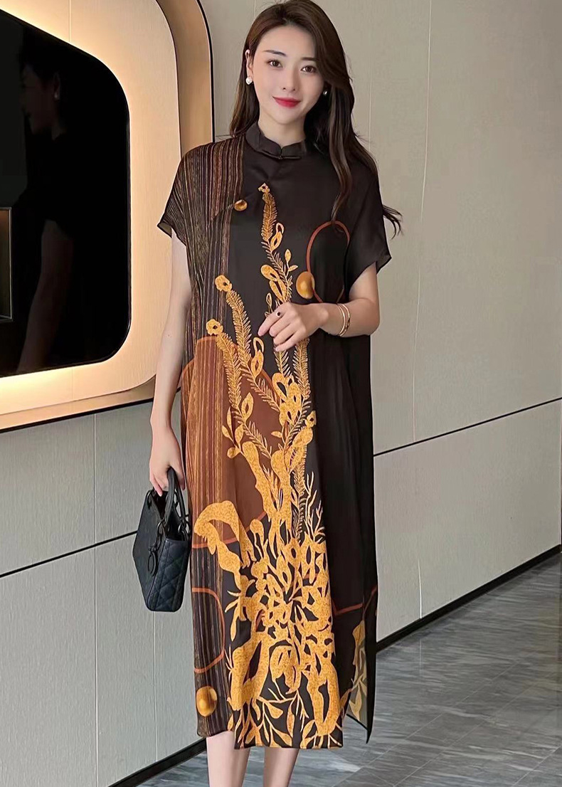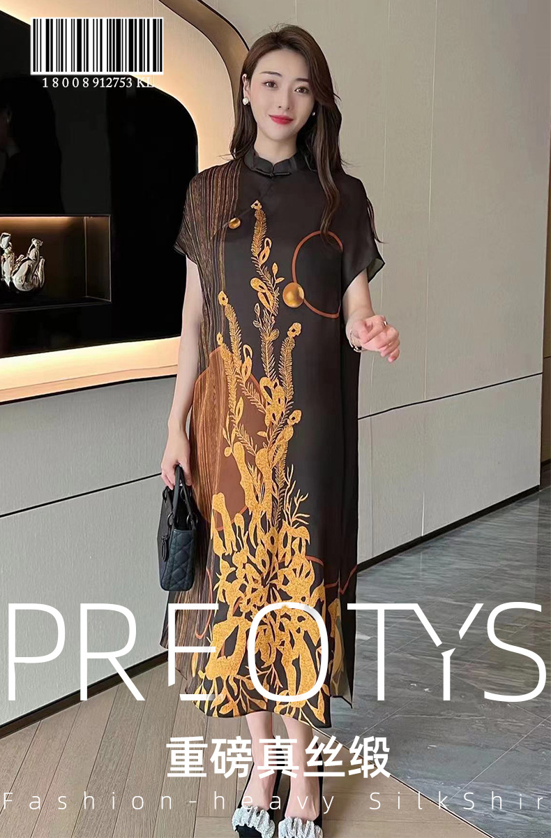 真丝国风复古2022夏新款气质优雅显瘦宽松桑蚕丝连衣裙NSM-M6603