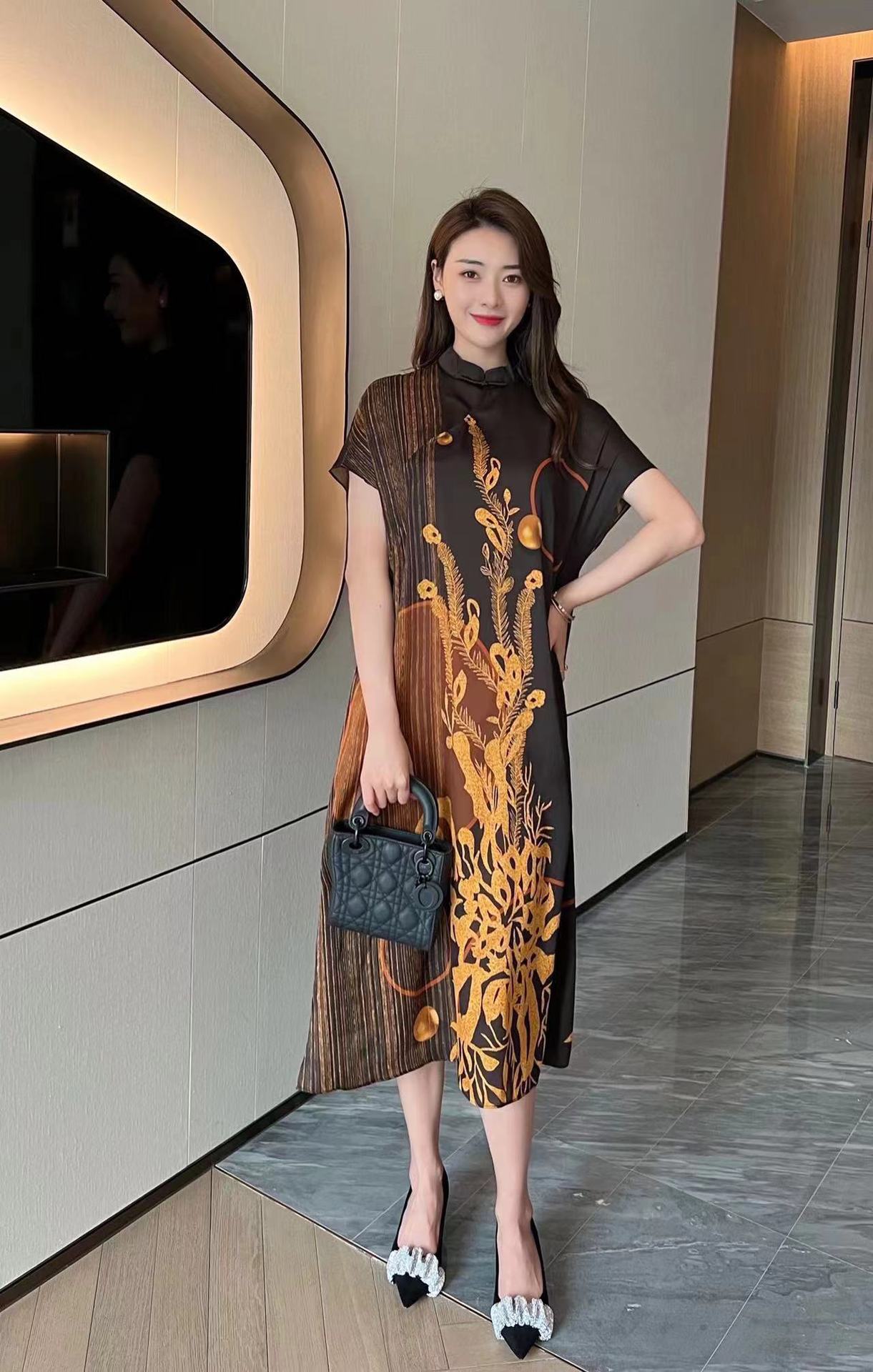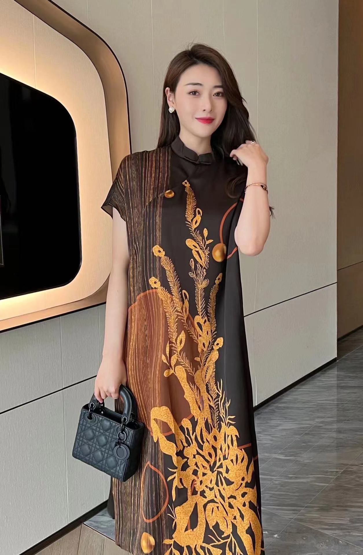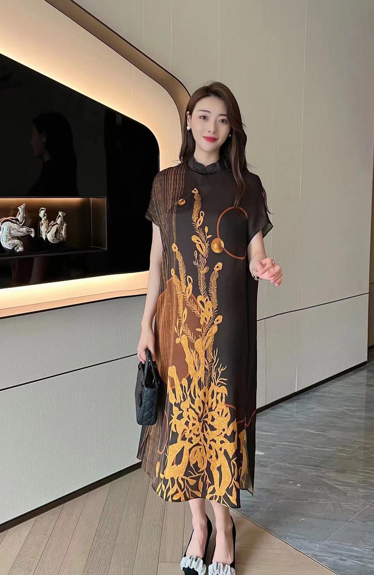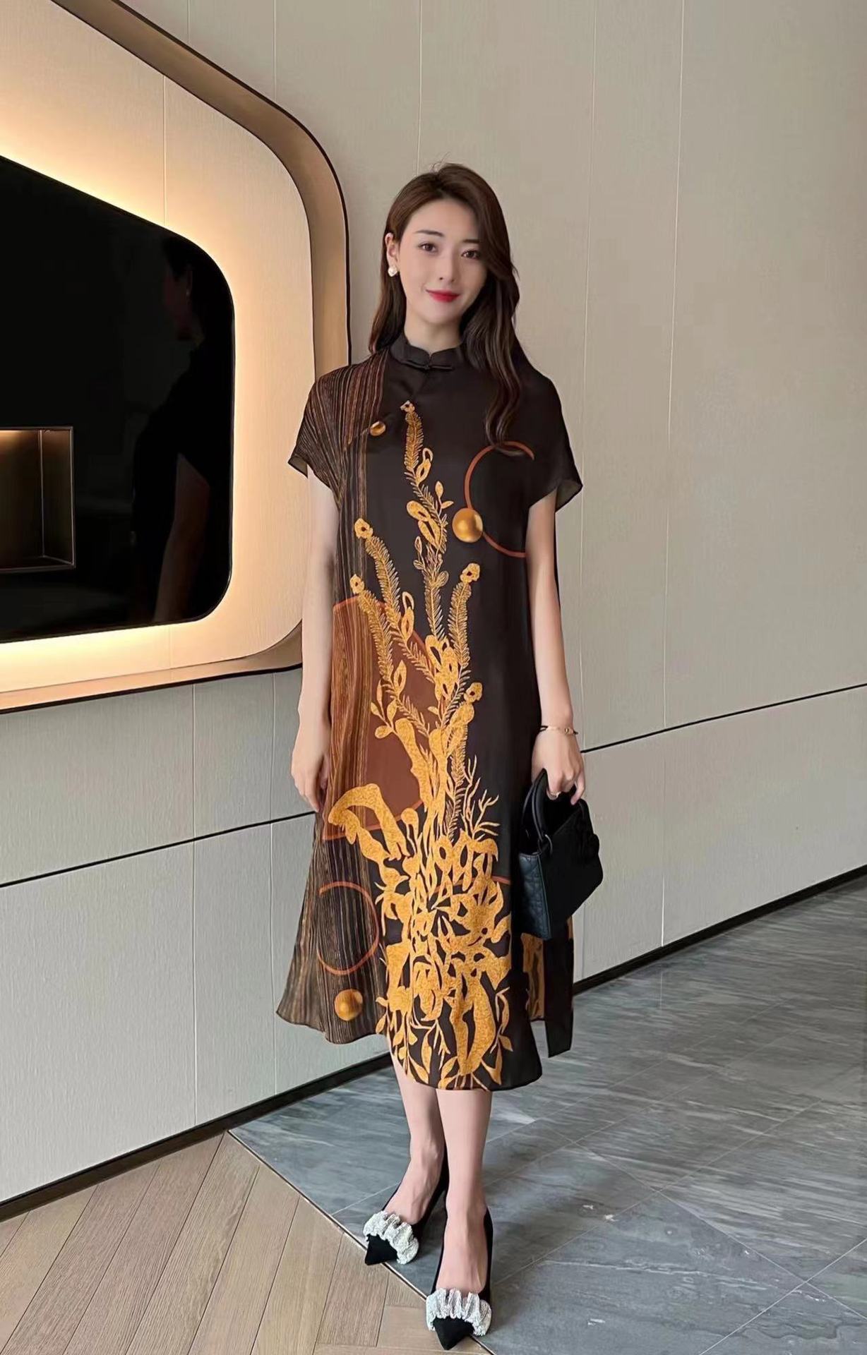 真丝国风复古2022夏新款气质优雅显瘦宽松桑蚕丝连衣裙NSM-M6603
