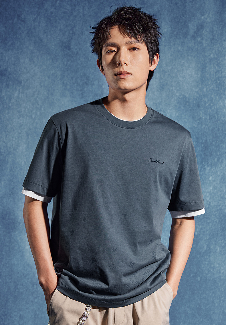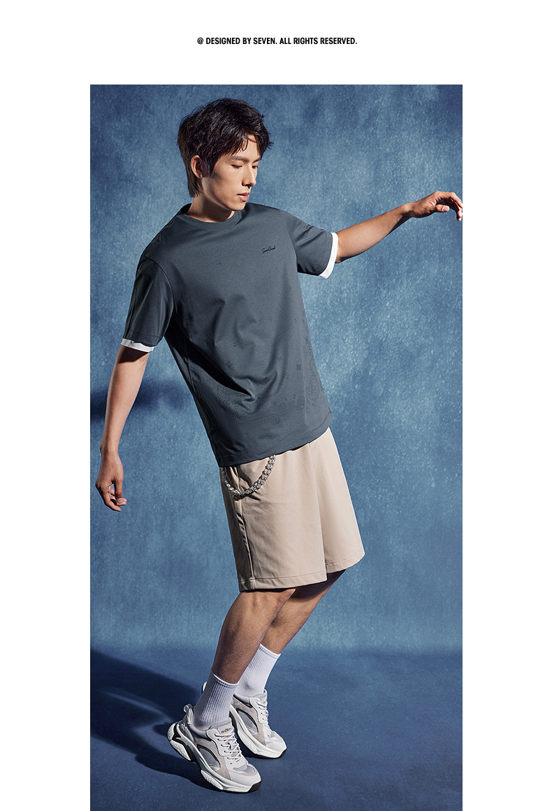 【非遗苗绣蝴蝶妈妈系列】柒牌短袖T恤男夏季凉感冰藻泥圆领上衣 126T72760