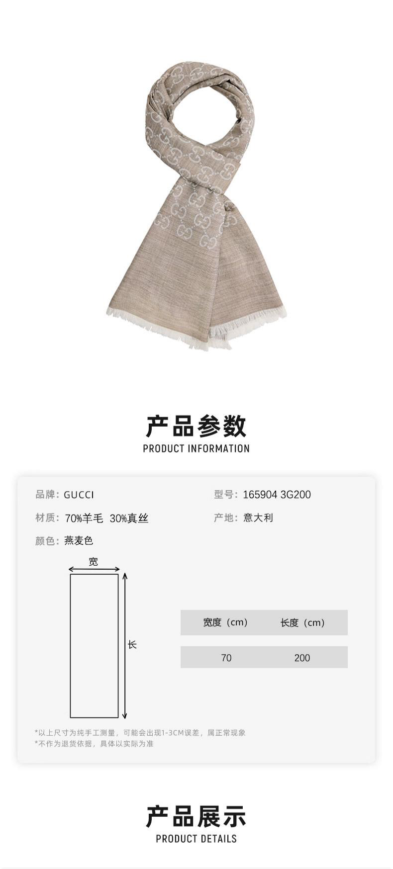 ![]() 【品牌】:GUCCI/古驰 【商品名称】:【送礼盒礼袋】Gucci古驰织花羊毛真丝围巾 香港直邮 【颜色】:燕麦色 【原产地】:意大利 【材质】:70%羊毛 30%真丝 【尺寸】:70*200cm 注: 手工测量尺寸存在2-3cm差异属于正常 【版本】:奥莱 【包装方式】:礼盒礼袋 【快递】:韵达快递 【发货地】:香港 【运费模板】:全国包邮,新疆西藏不发货 【发货时效】:72小时 【售后政策】:支持七天无理由退换(不影响二次销售的基础上) |