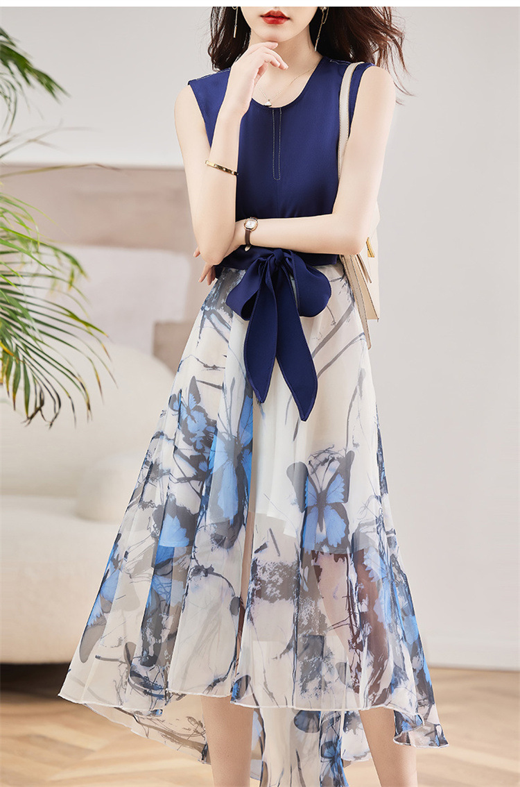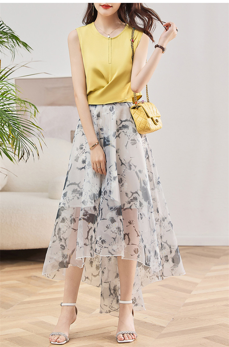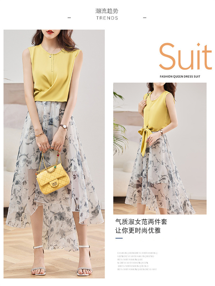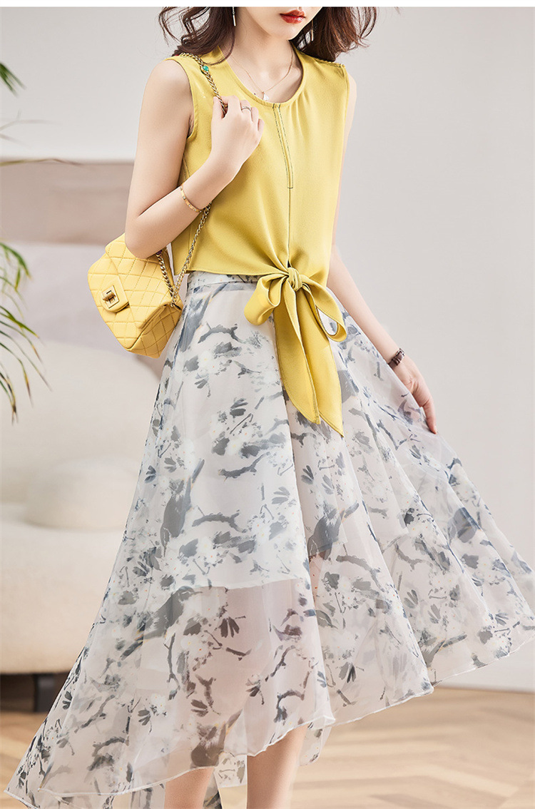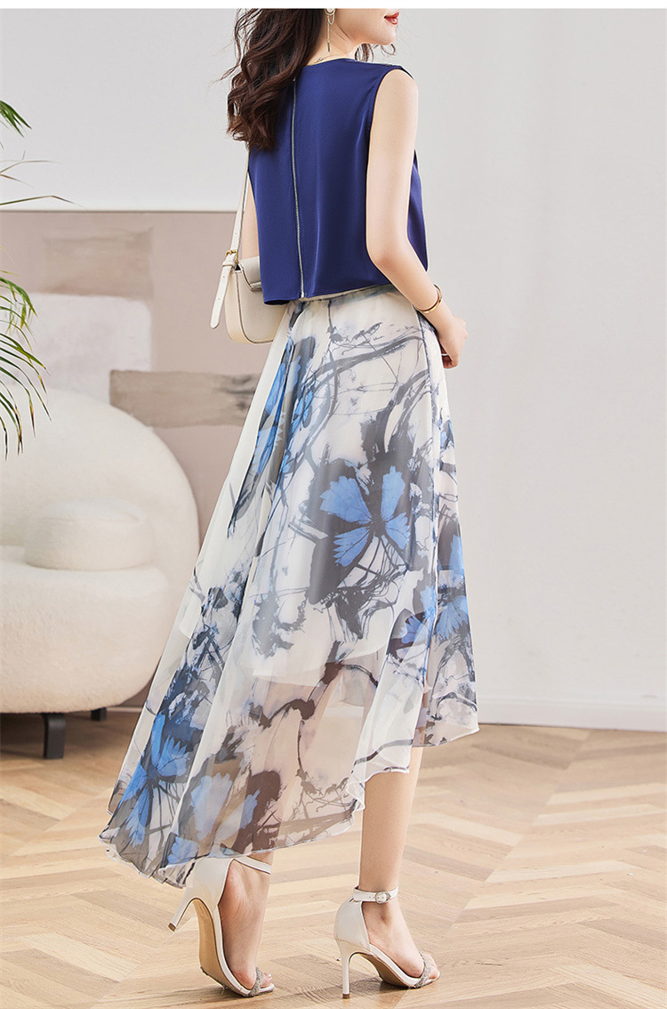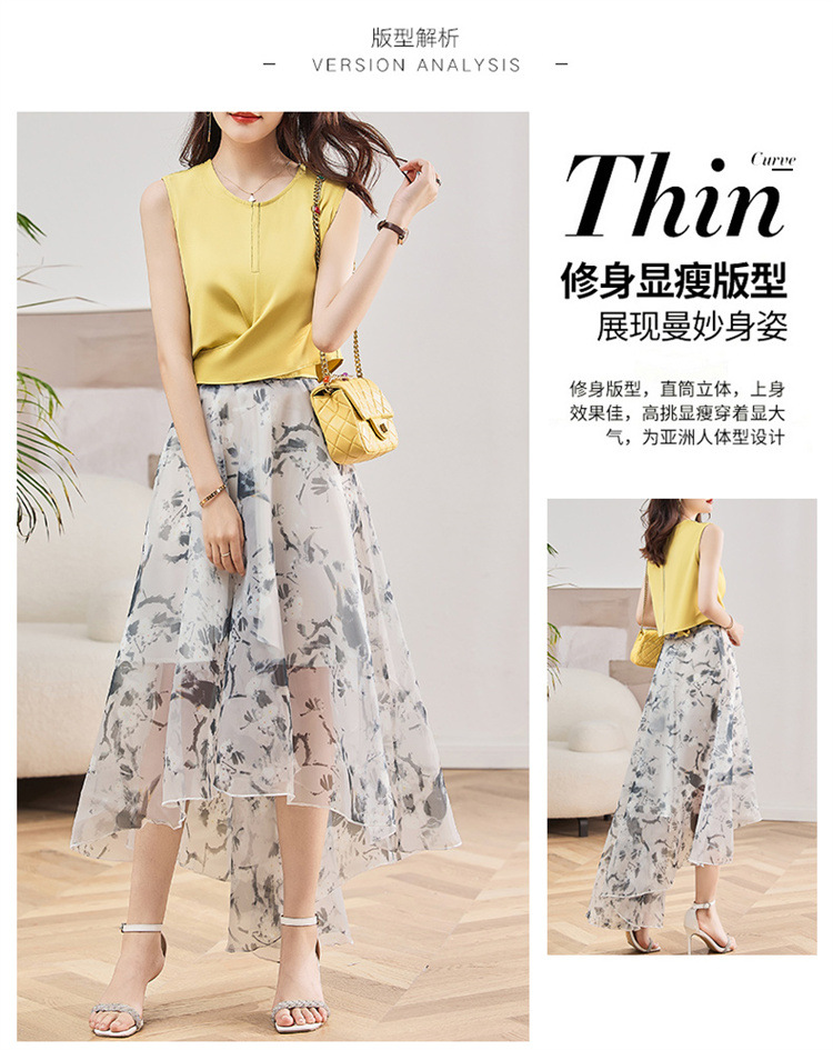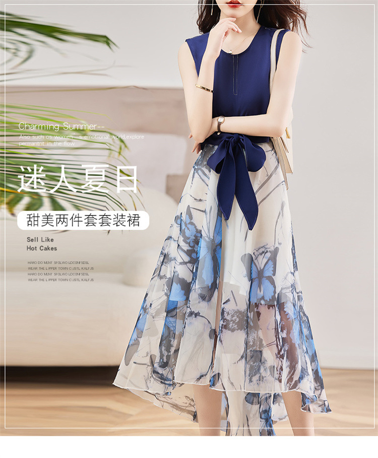 休闲时尚,气质优雅纱裙印花两件套HR-AMS2237