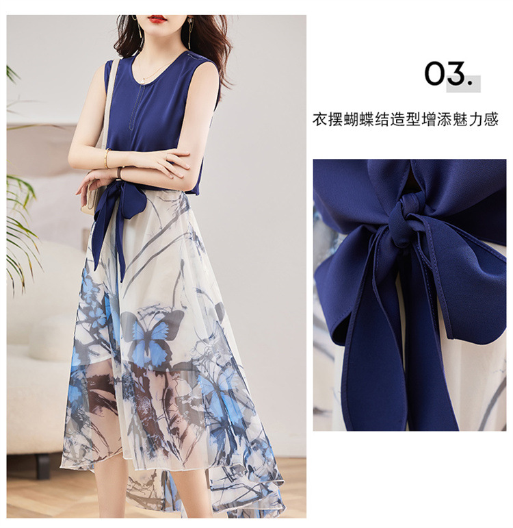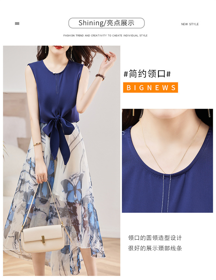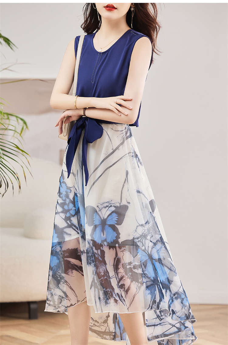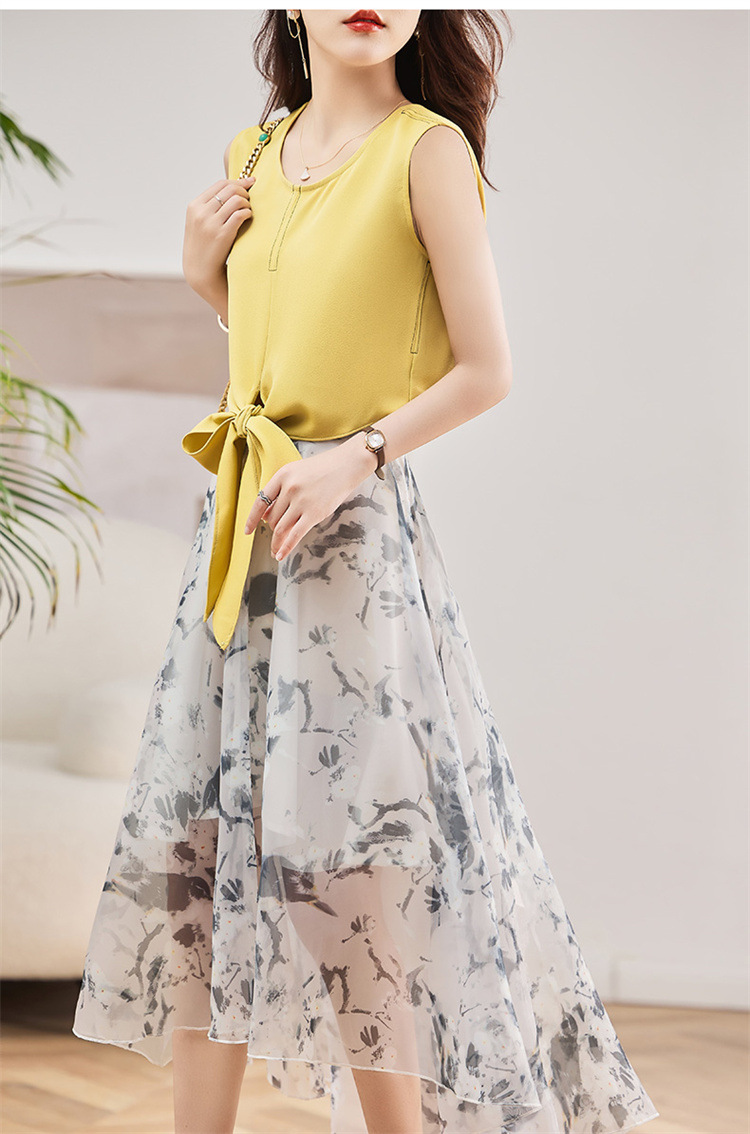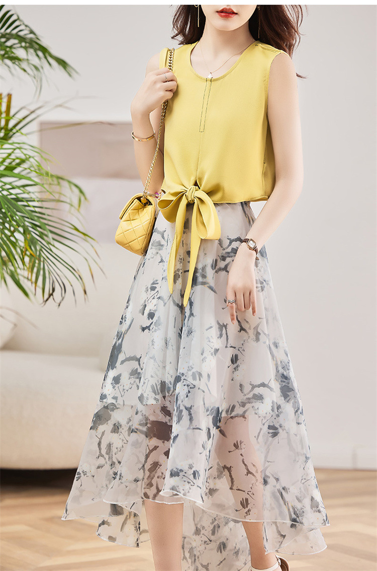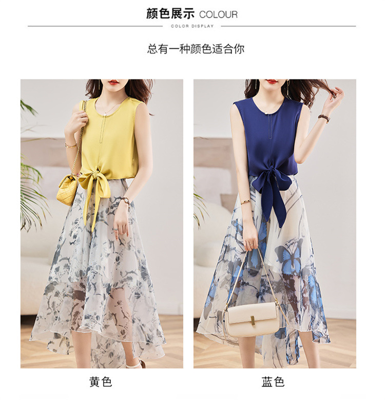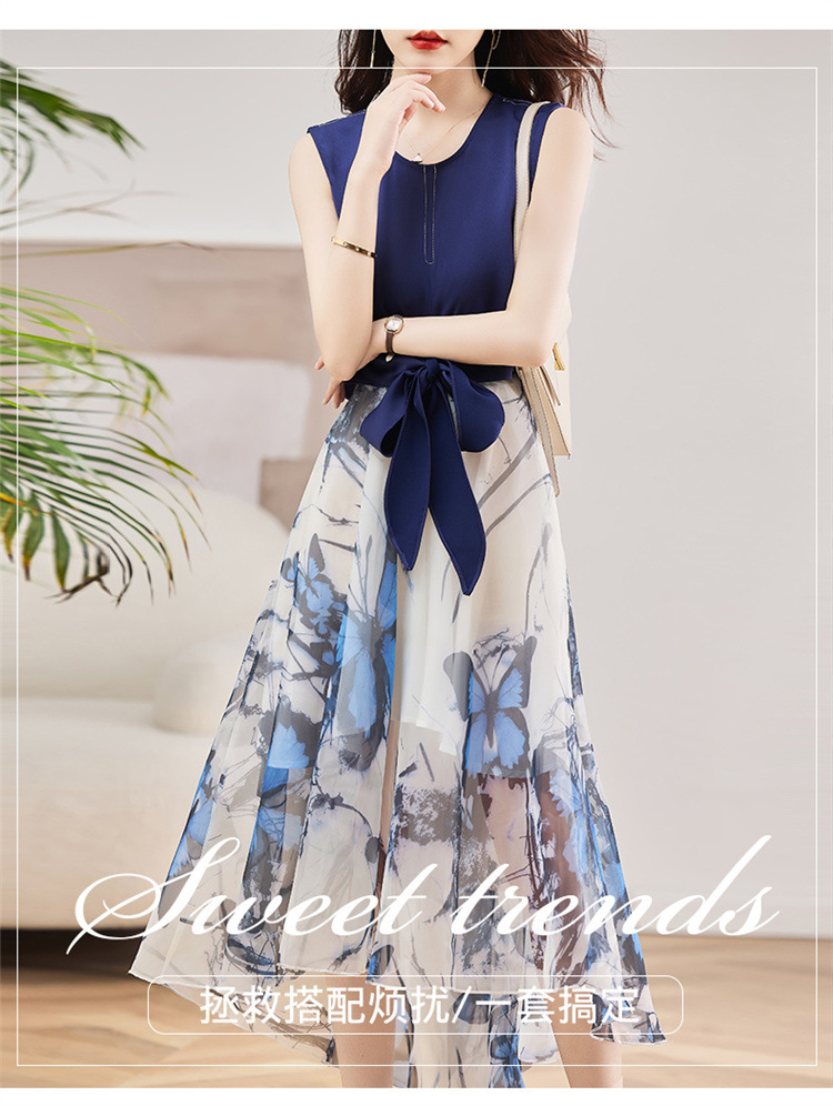 休闲时尚,气质优雅纱裙印花两件套HR-AMS2237