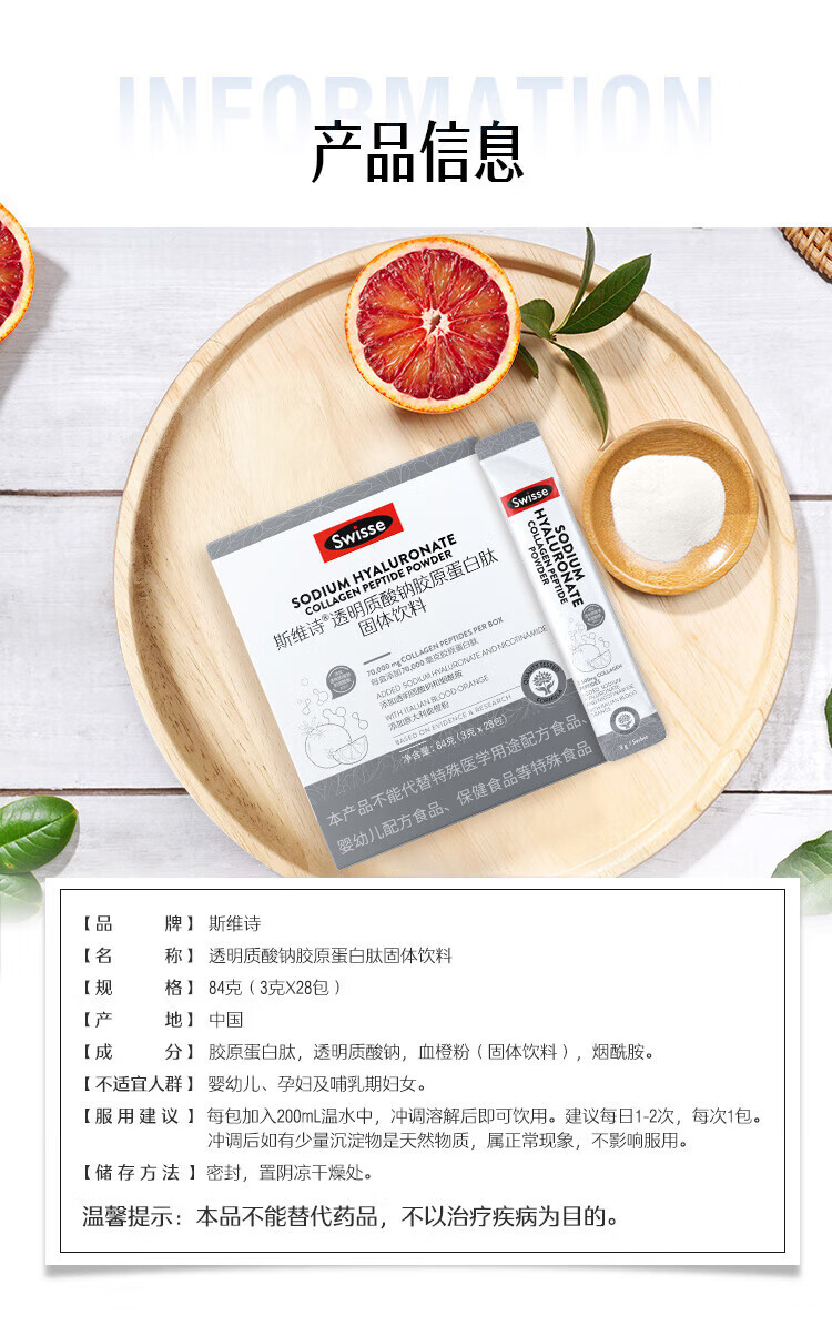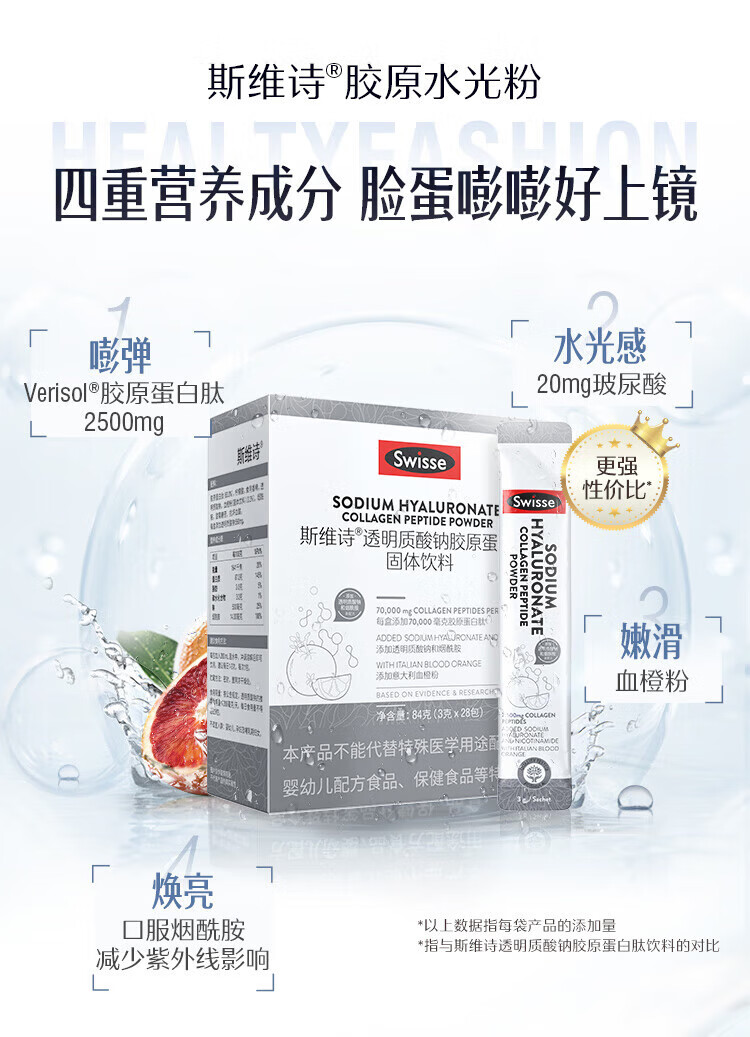 【1件包邮】Swisse斯维诗透明质酸钠胶原蛋白肽固体饮料3g*28条/170024 四重营养成分 新疆/西藏/海南/内蒙/云南/宁夏/甘肃/青海/港澳台不发货